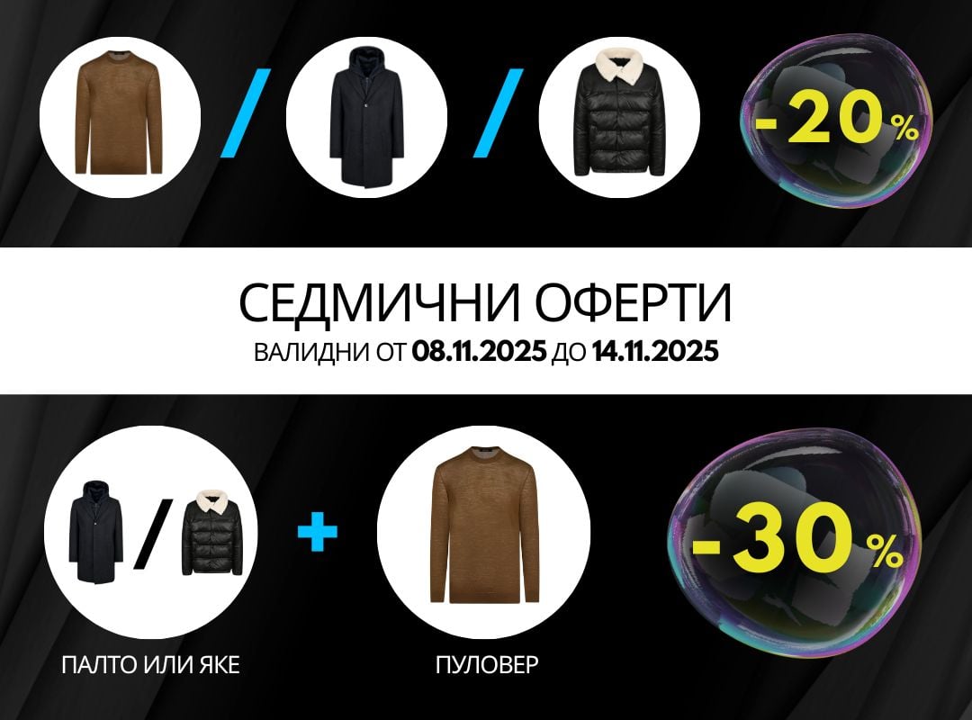 Ексклузивно онлайн от 08.11.25 до 14.11.25 открий специалните предложения на Monni: -20% на всички пуловери, жилетки, палта и якета, а при комбинация от палто или яке с пуловер -30%!