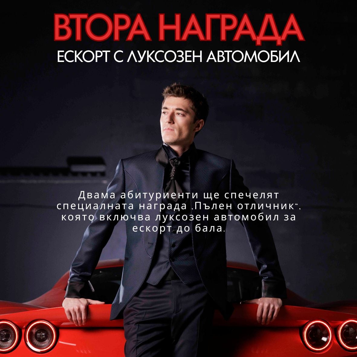 Участващите абитуриенти ще могат да спечелят и наградата „Пълен отличник 666666“, при която ще бъдат ескортирани с луксозните автомобили BENTLEY FLYING SPUR и FERRARI F8 TRIBUTO.