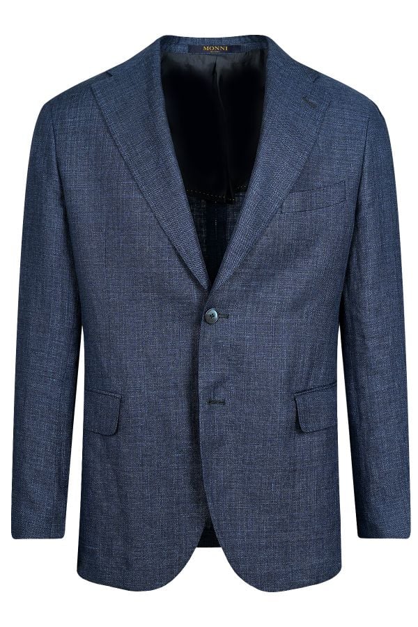 Едноредно сако с дълбоко V-образно закопчаване, което издължава торса.