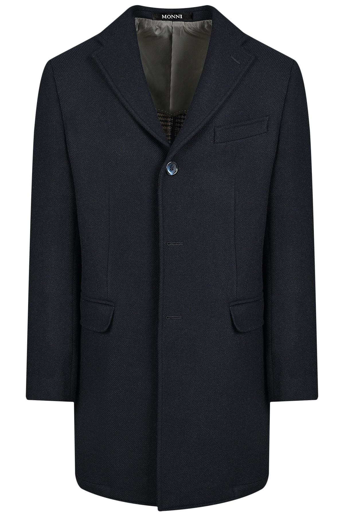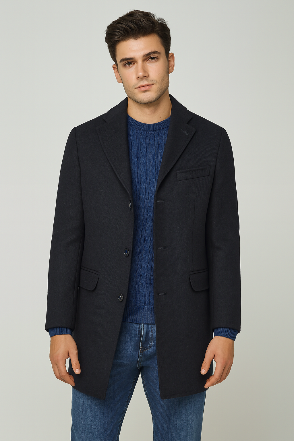 Мъжко класическо палто от вълна със ситен оребрен ефект в синьо