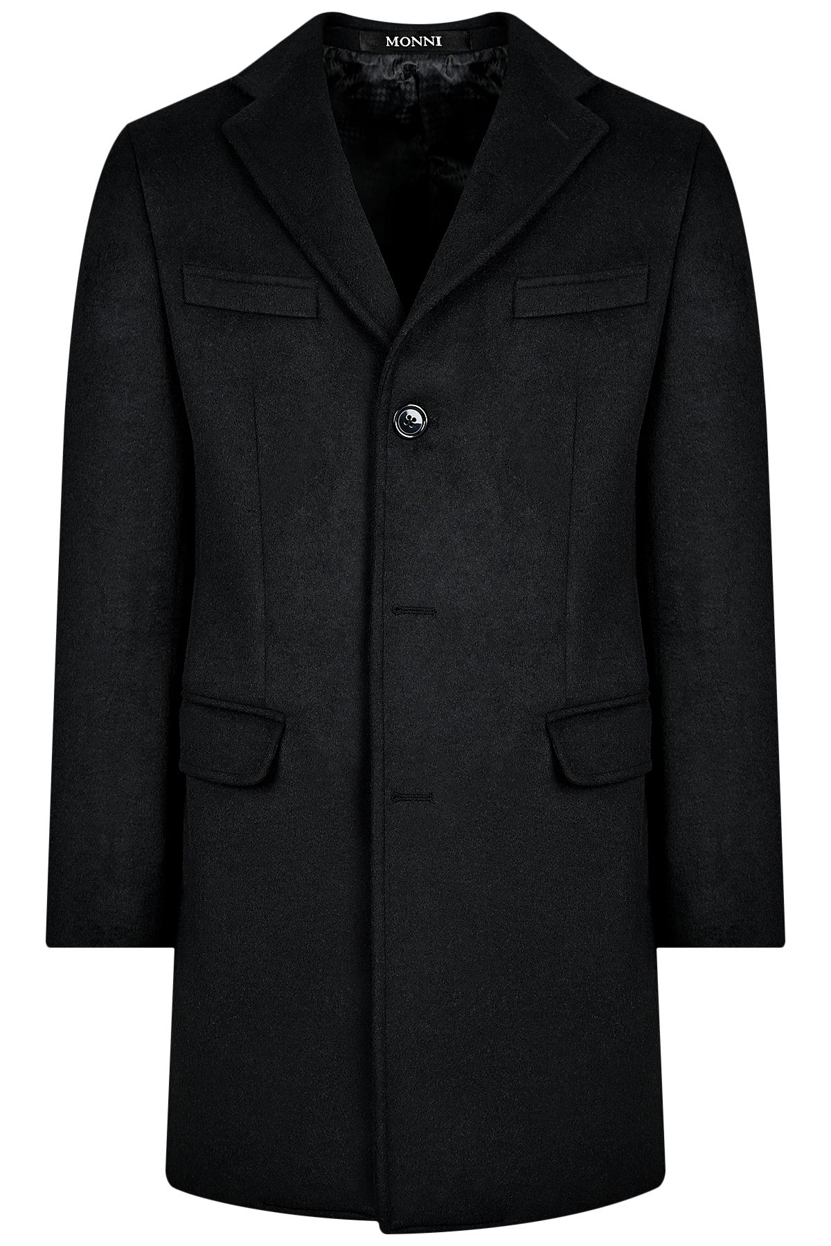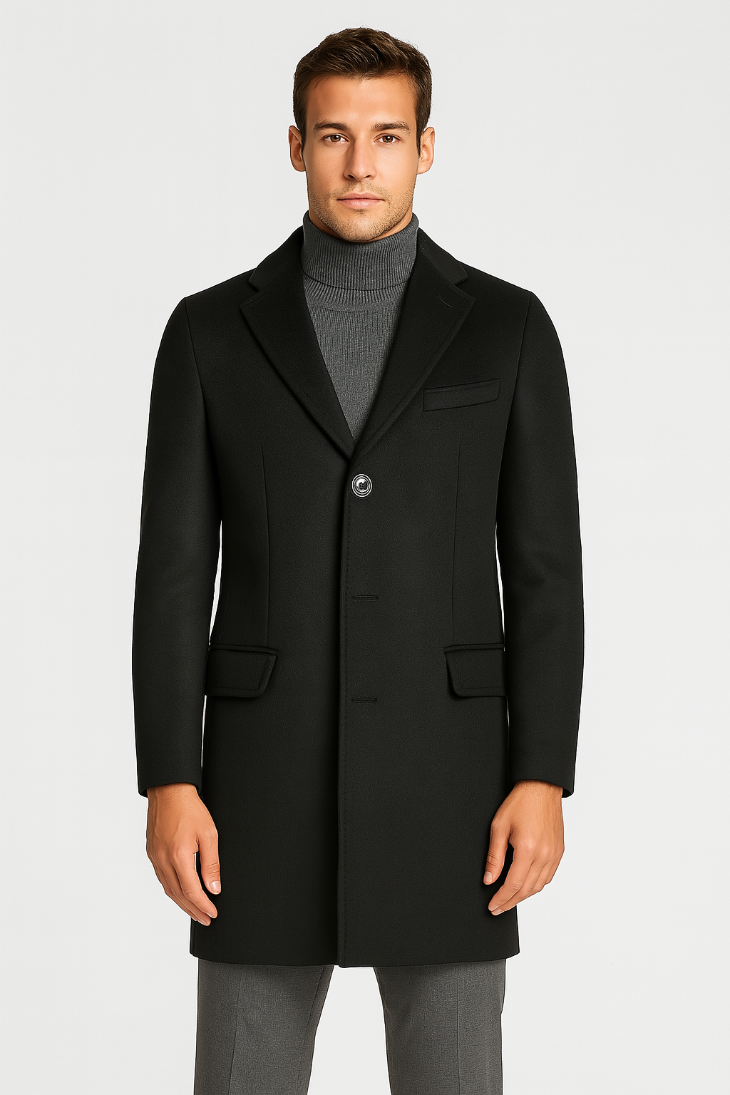 Мъжко класическо палто от вълна с лъскав ефект в черно