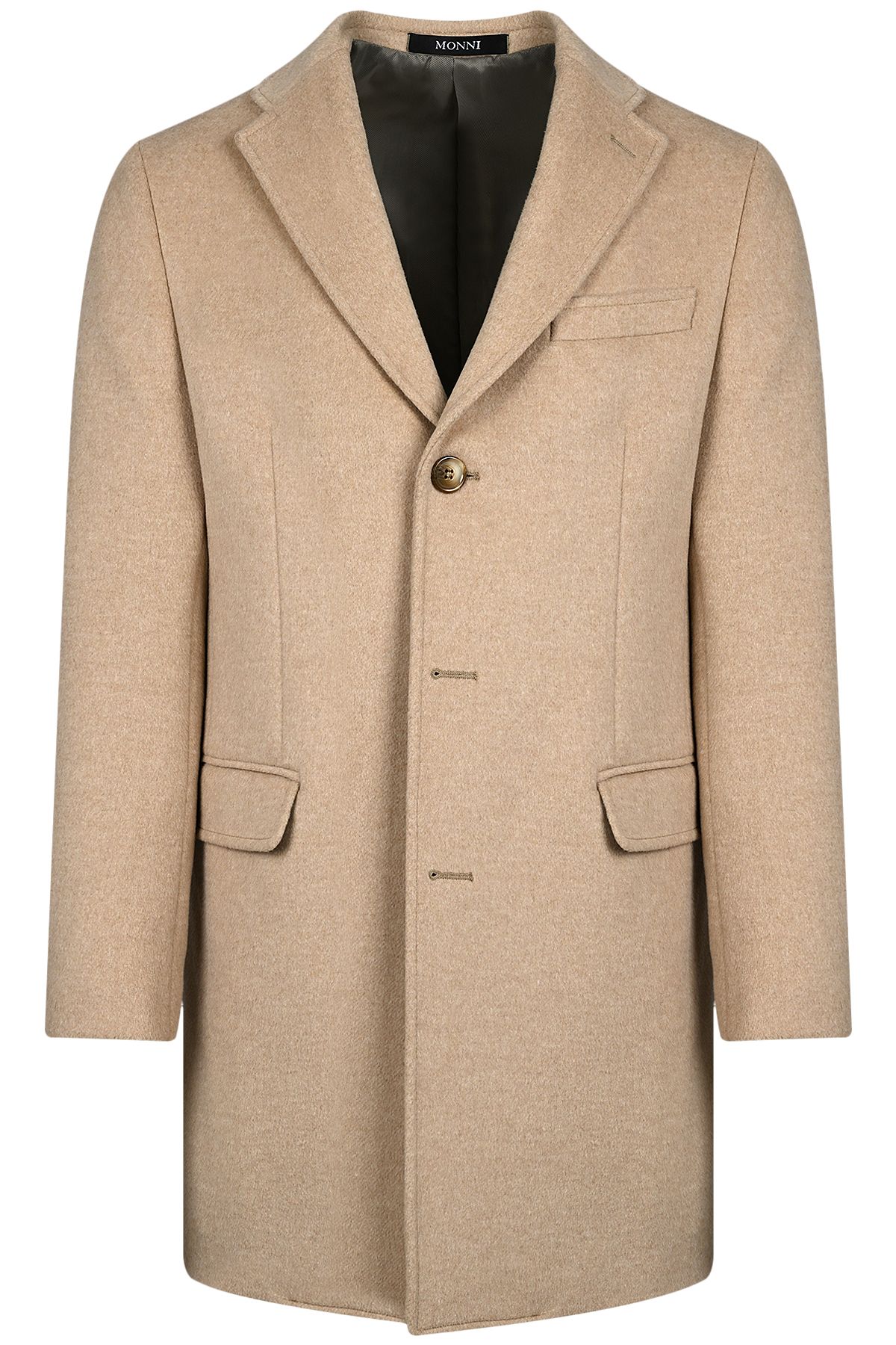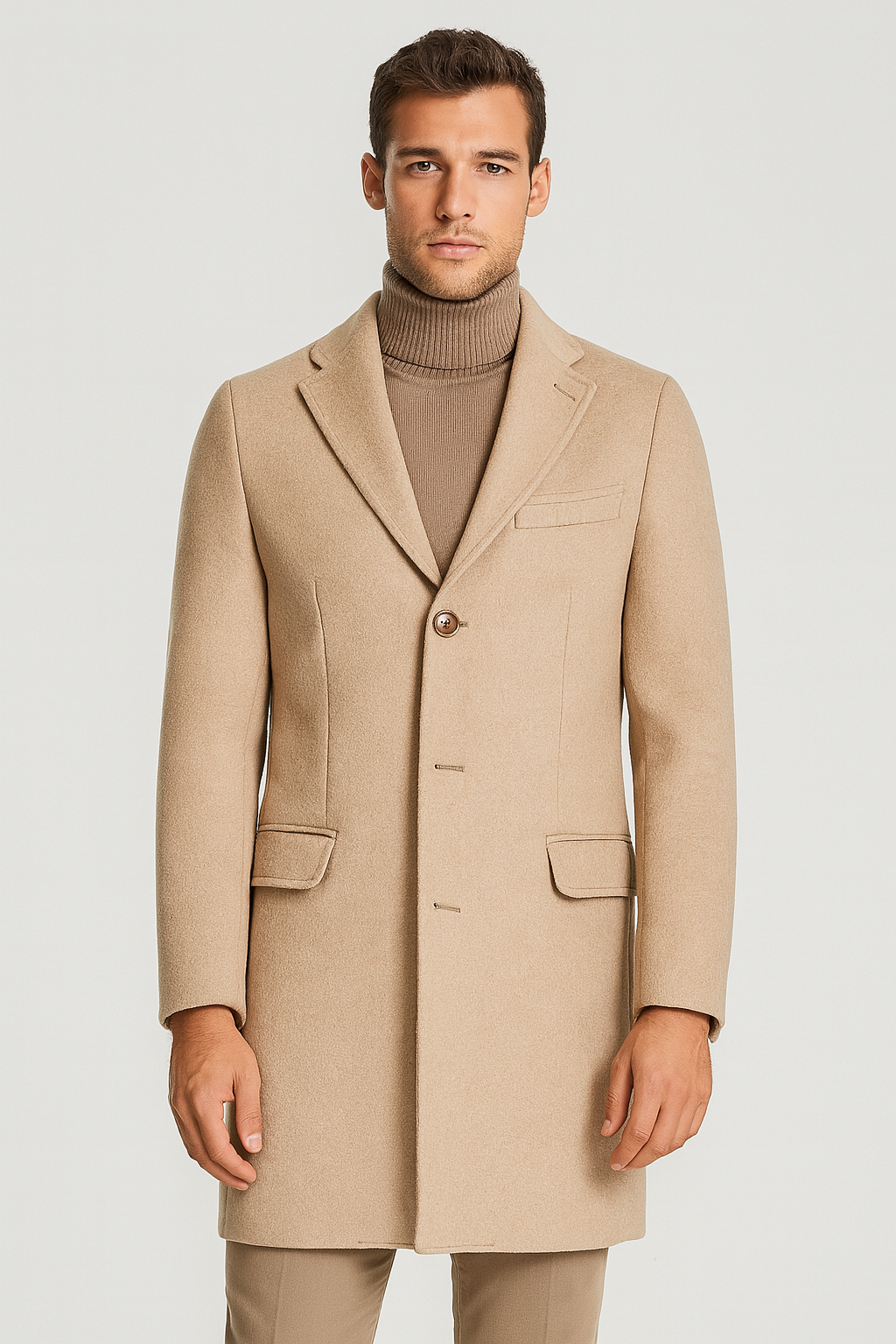 Мъжко класическо палто от вълна с лъскав ефект в светлобежово