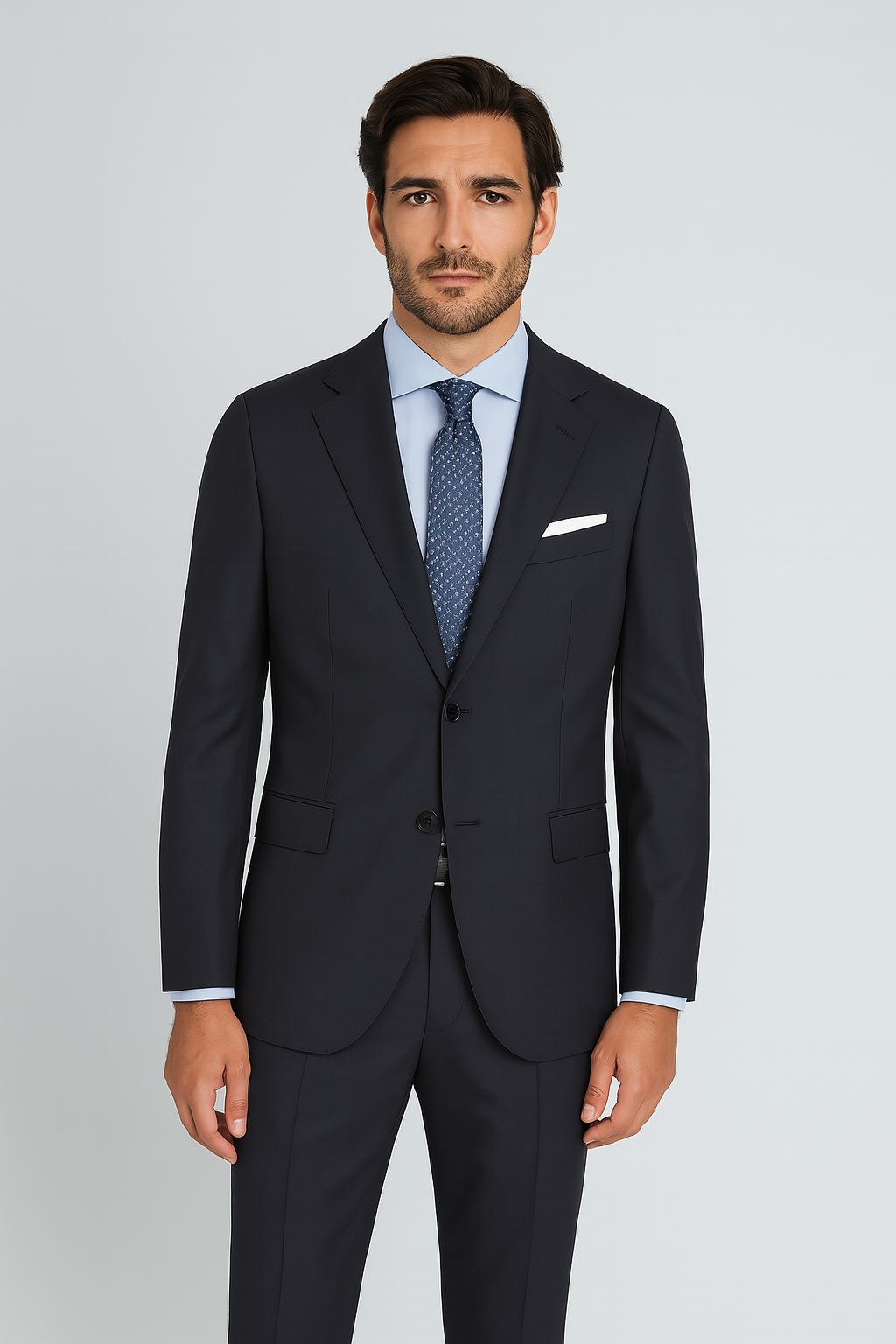 Мъжки втален костюм от вълна с релеф в тъмносиньо