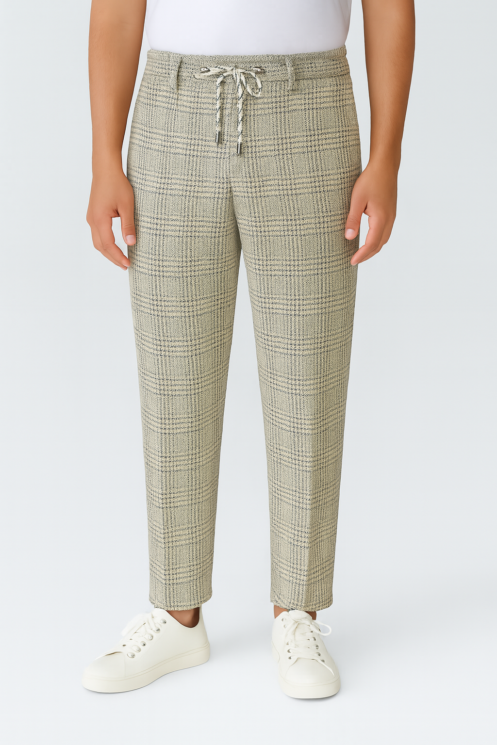 Мъжки панталон от кариран джърси плат в бежов цвят