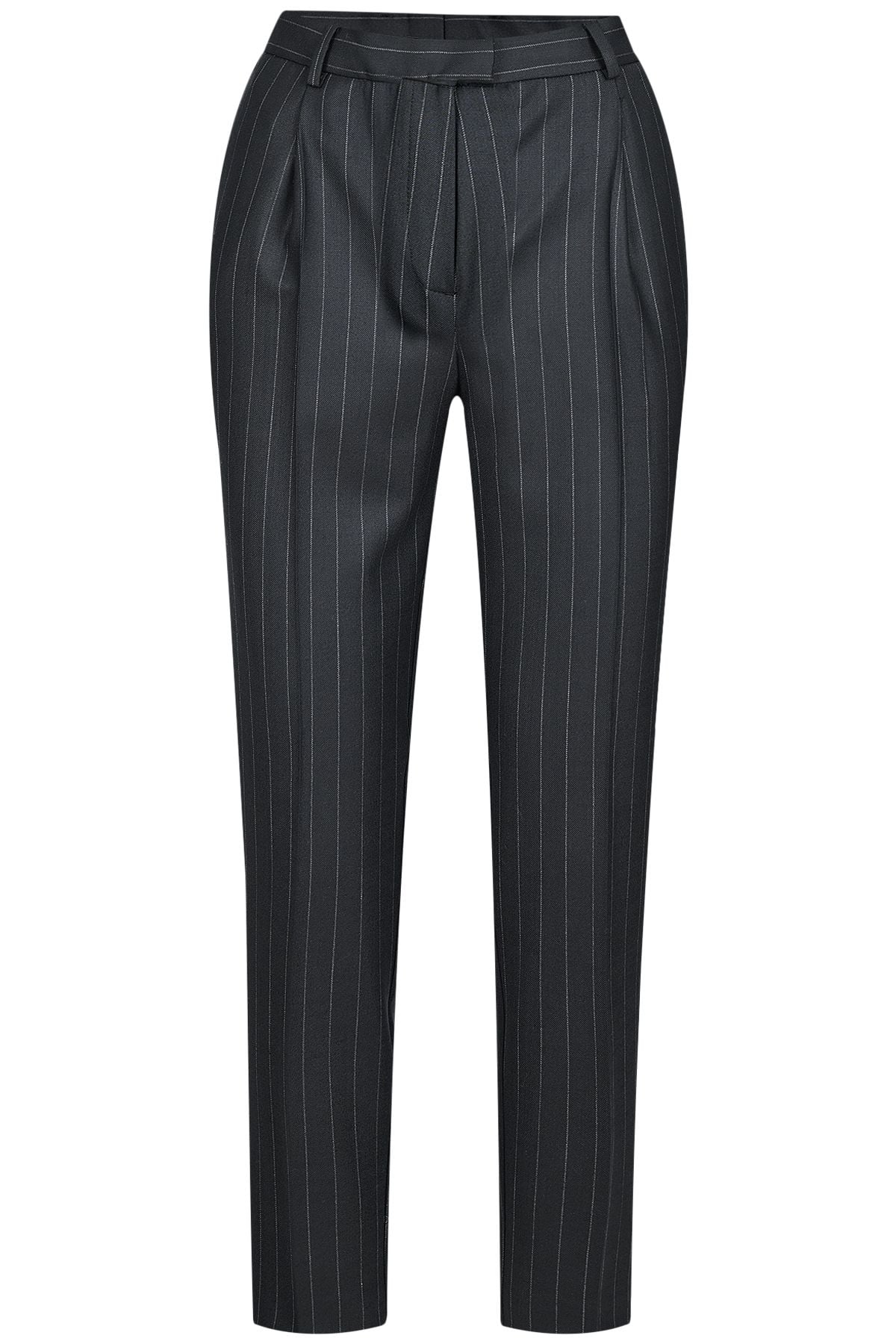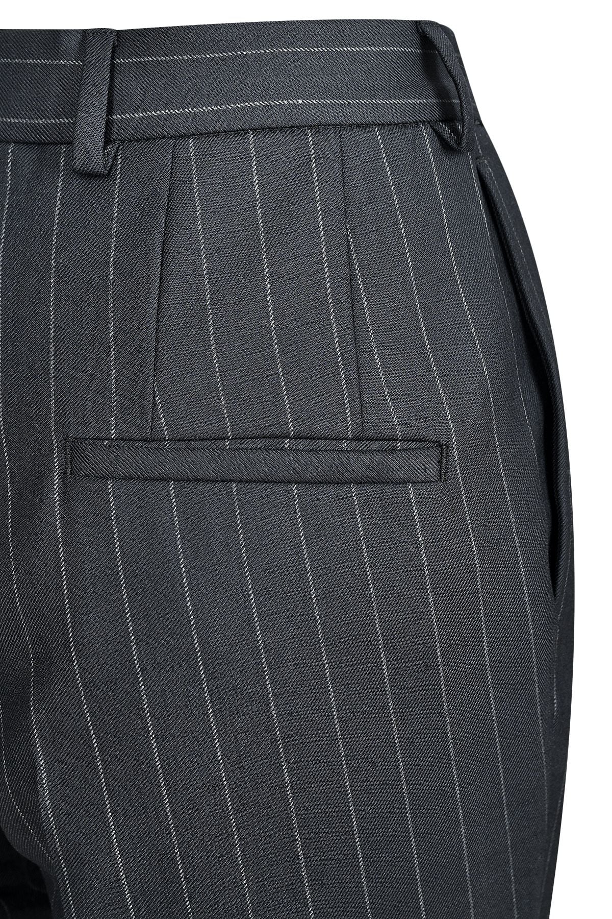Панталонът към сакото е елегантен, втален с облечен колан подходящ за високи токчета.