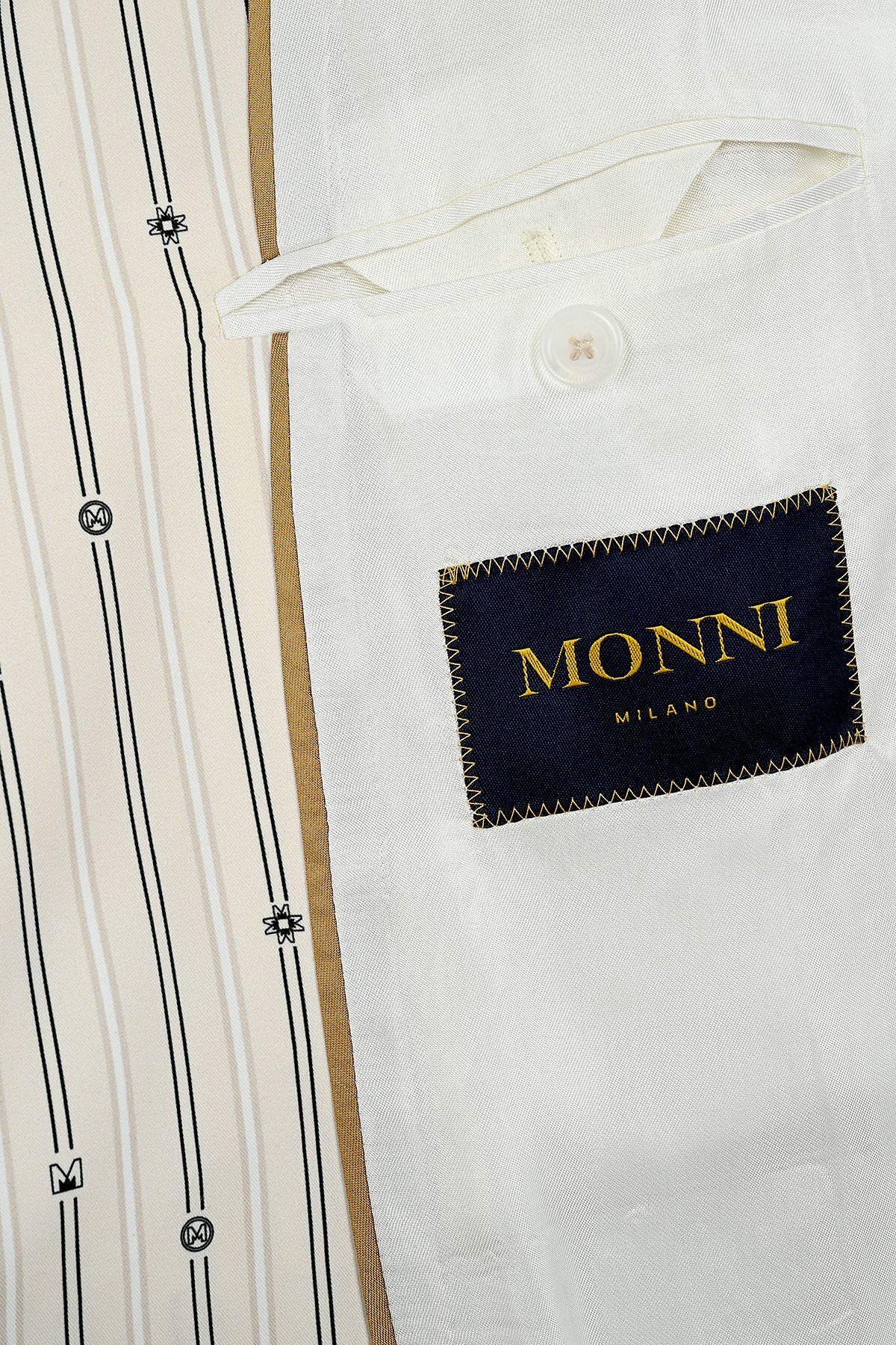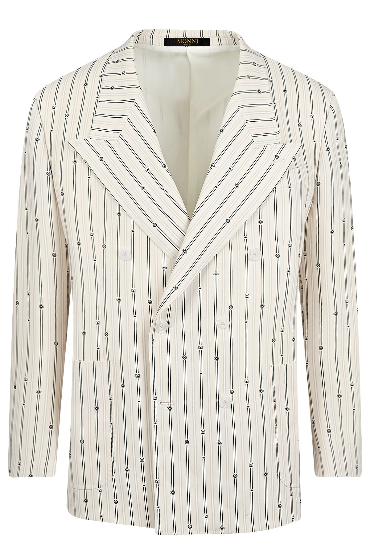 Двуредно мъжко сако с фино брандирано райе в цвят екрю