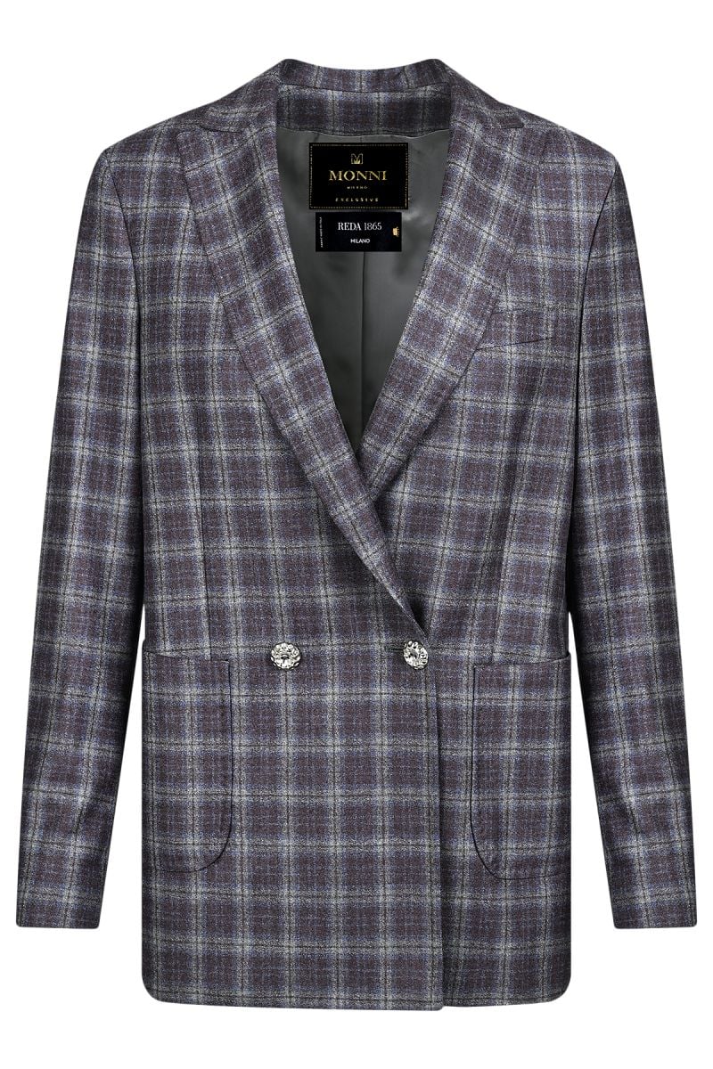 3. Двуредно дамско сако от кариран вълнен плат с лурекс Двуредно дамско сако от кариран вълнен плат с лурекс