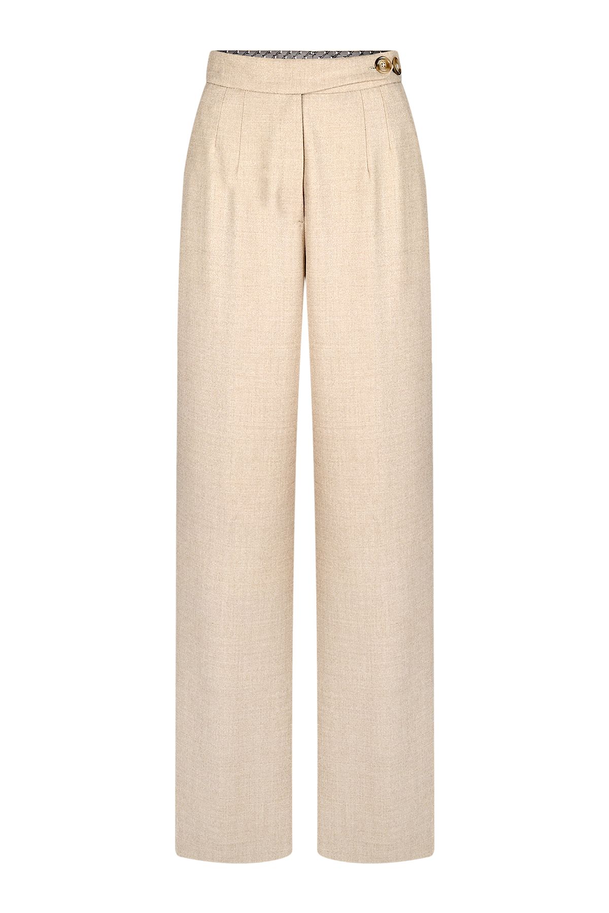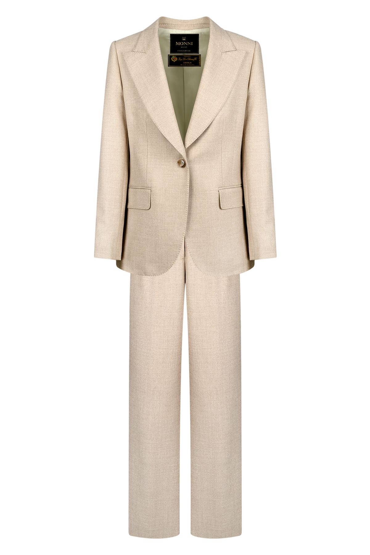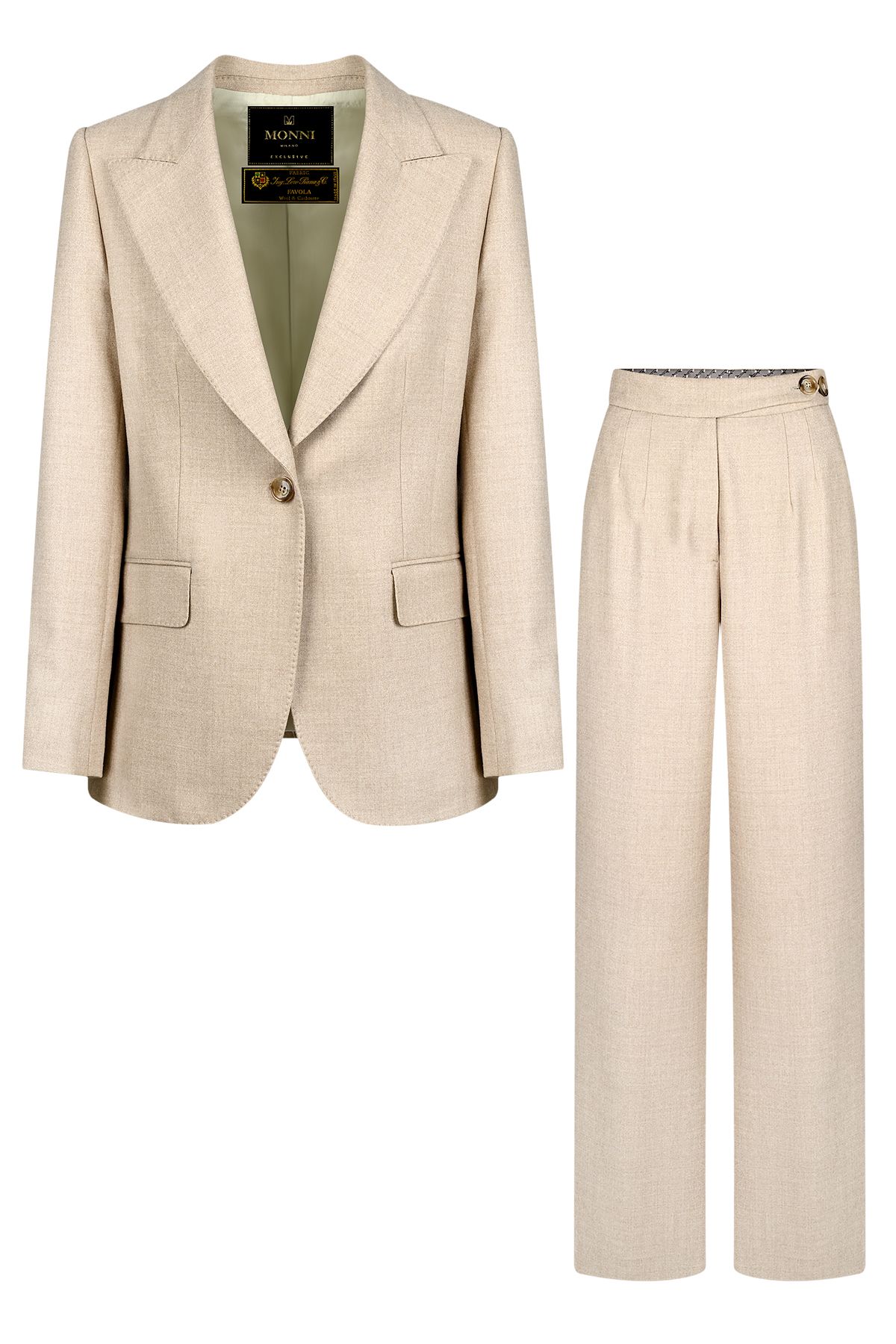 Еднореден дамски вълнен костюм от фин италиански плат с широк панталон с две басти