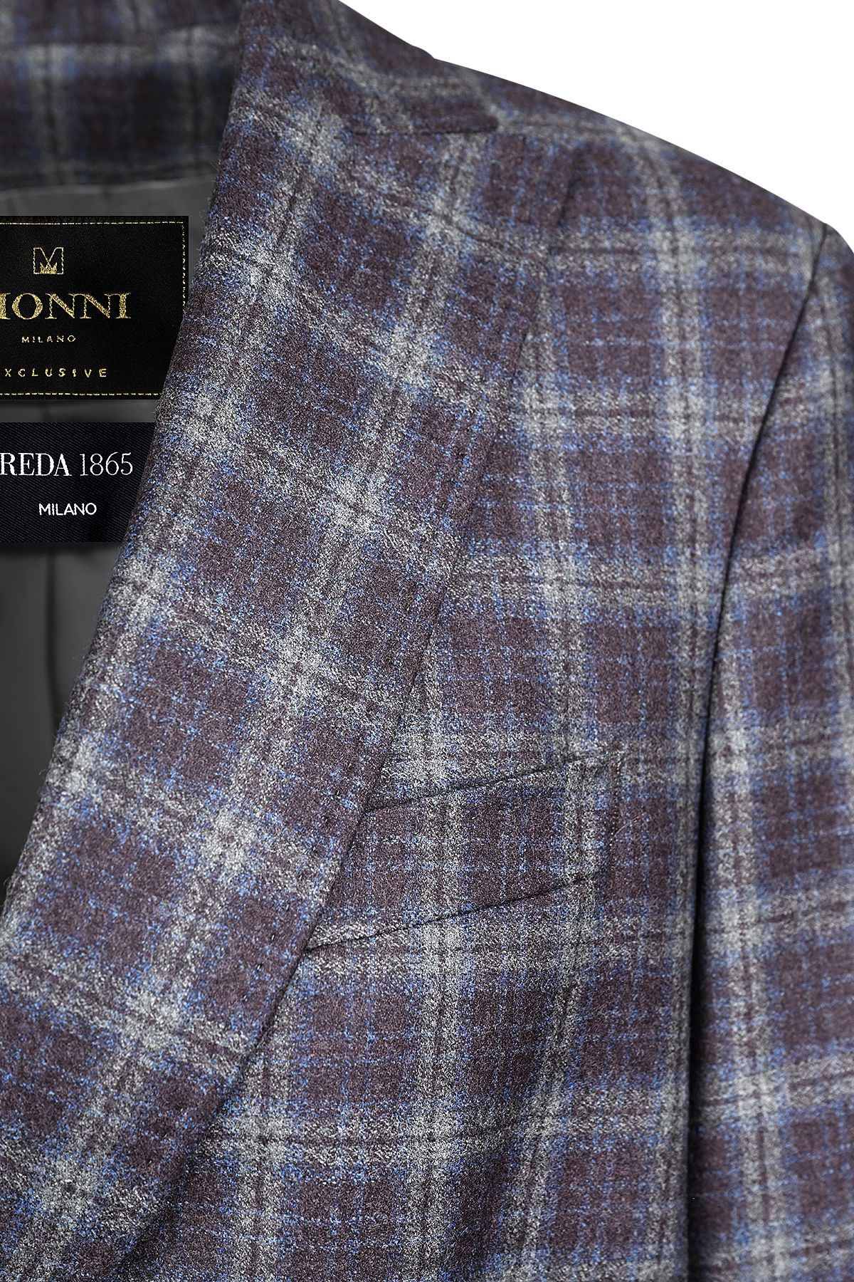 Елегантно дамско вълнено палто от 100% вълна в лилаво и сиво каре