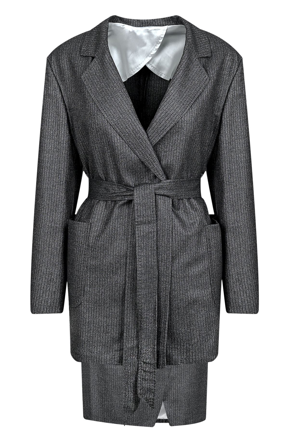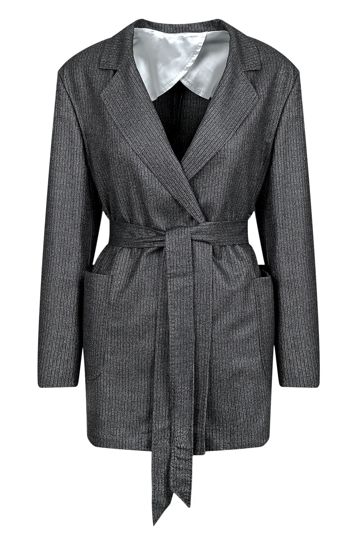 - Дамското сако е съсвободна кройка и е с колан , който може да пристегне и втали силуета.