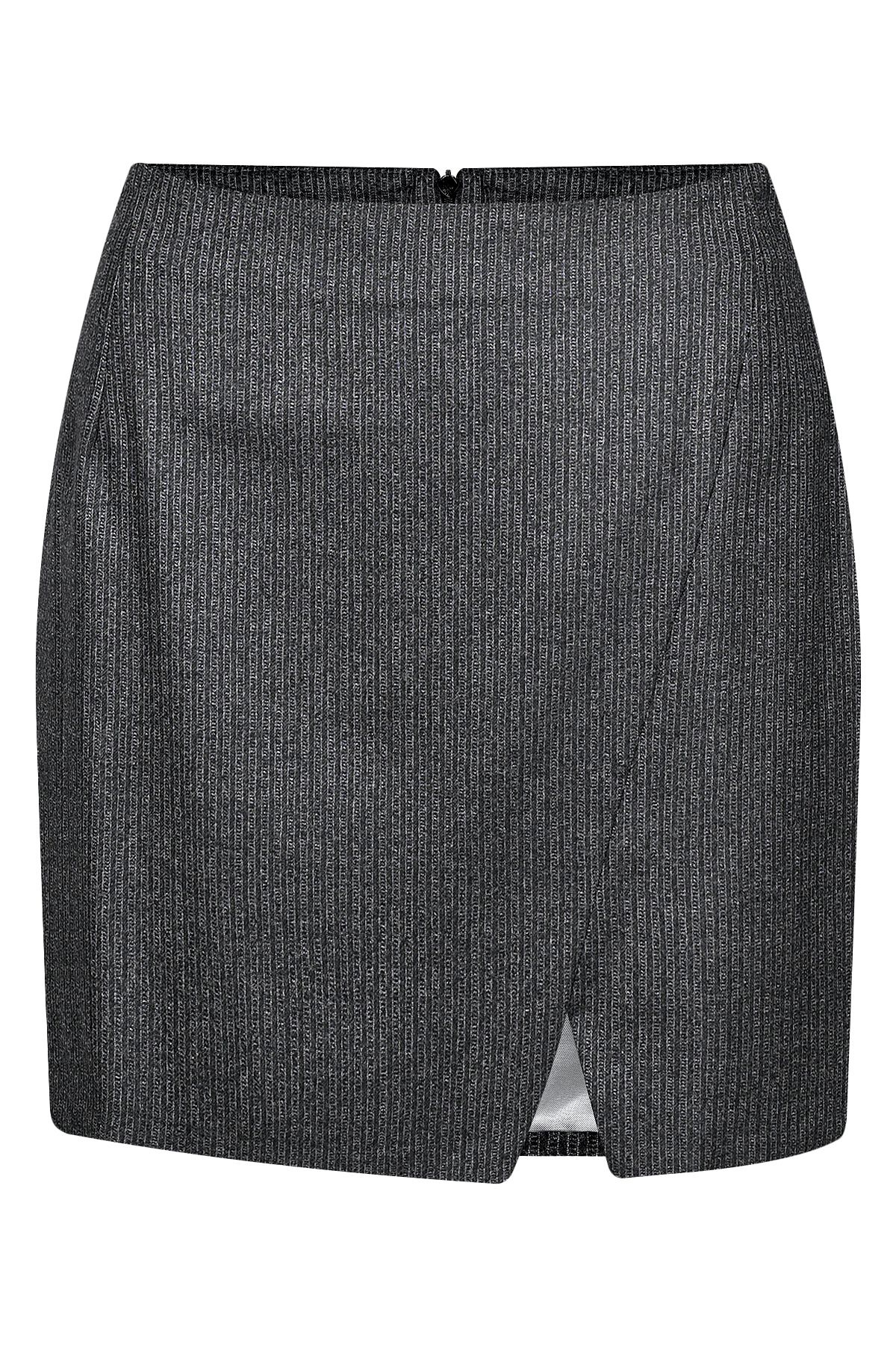 Дамски елегантен костюм от 100% вълна с къса вталена пола в тъмно сив пепит
