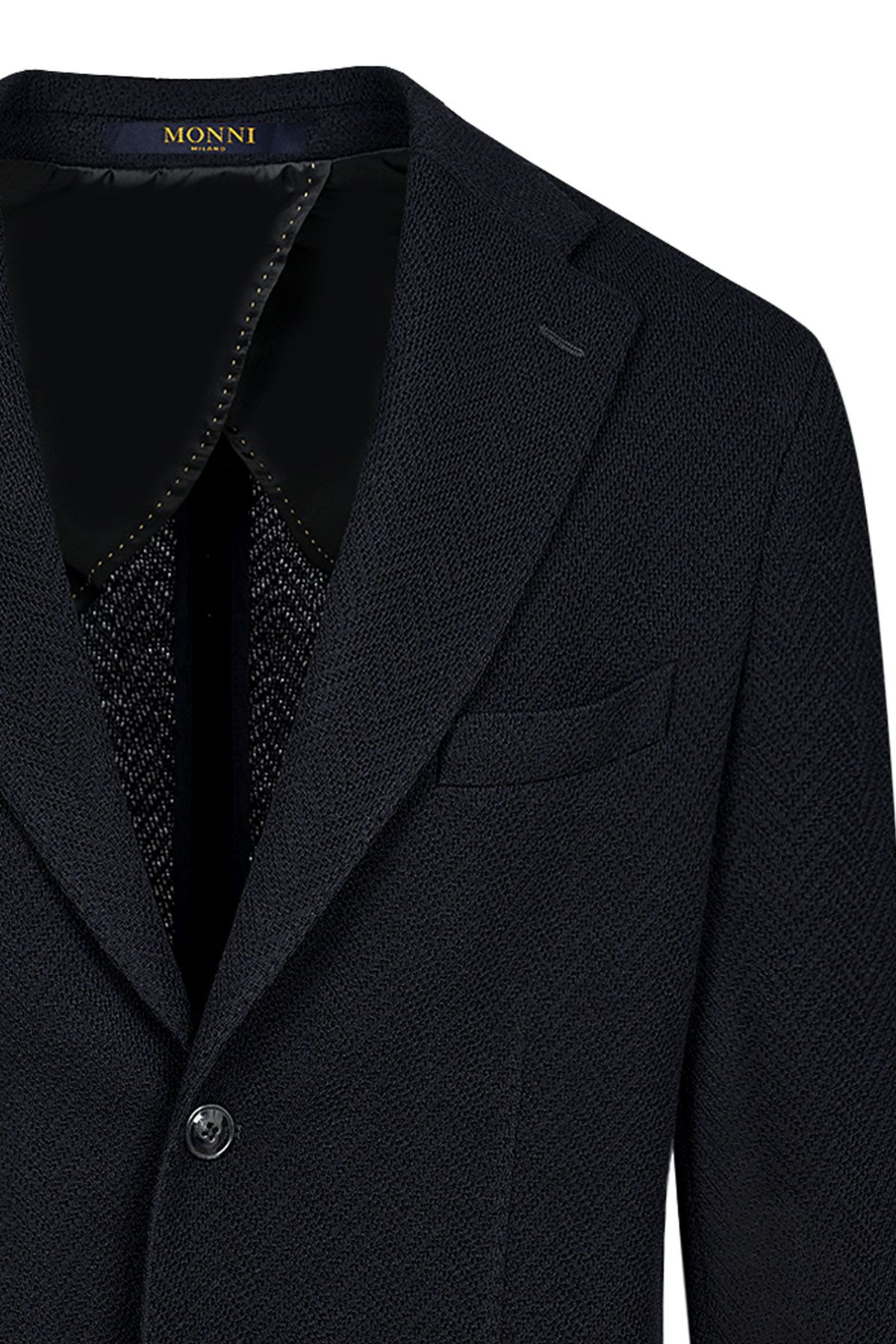 Луксозно спортно сако от релефен плат от 100% вълна в тъмносин цвят
