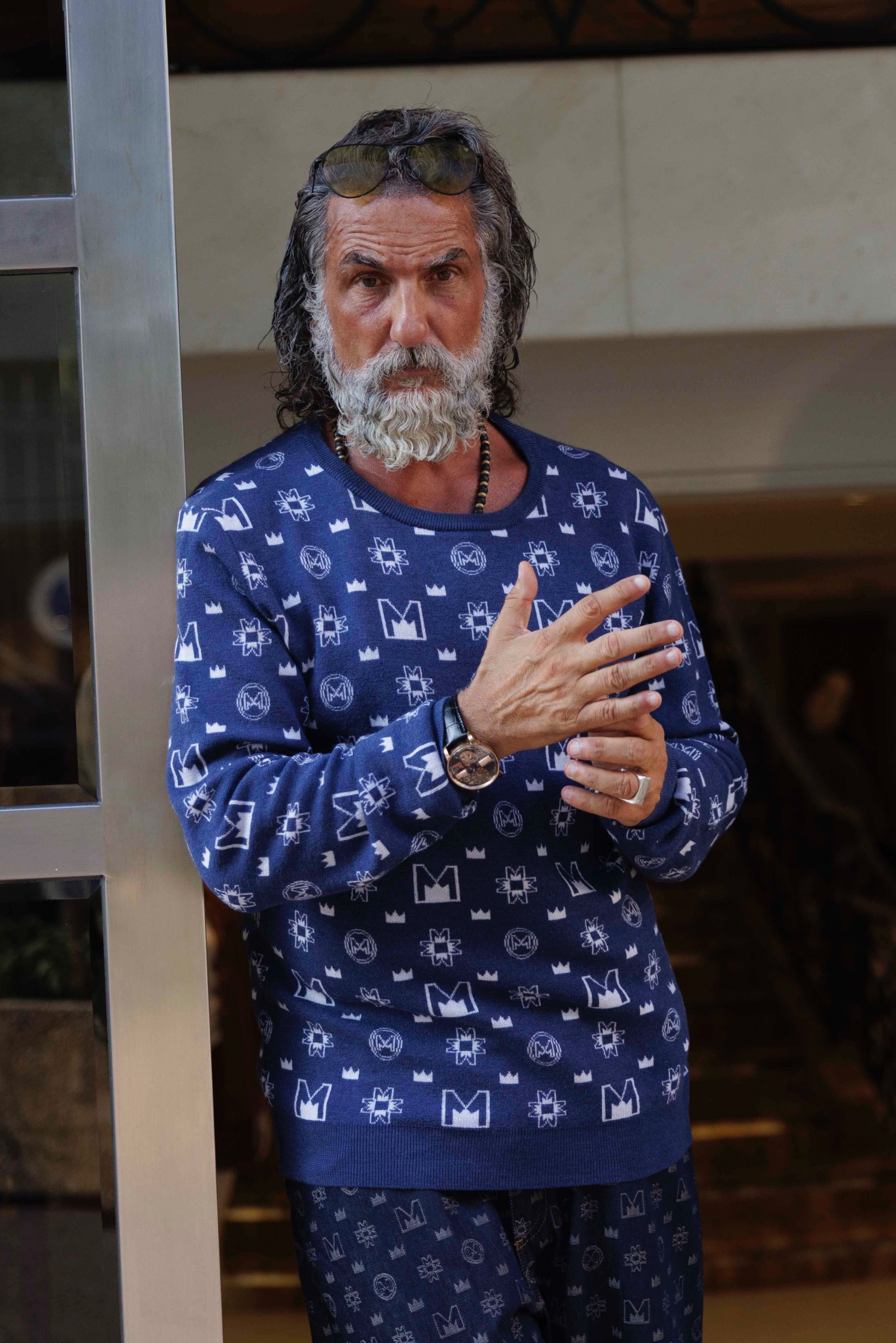 Луксозен мъжки пуловер Crew Neck с брандиране символи в синьо