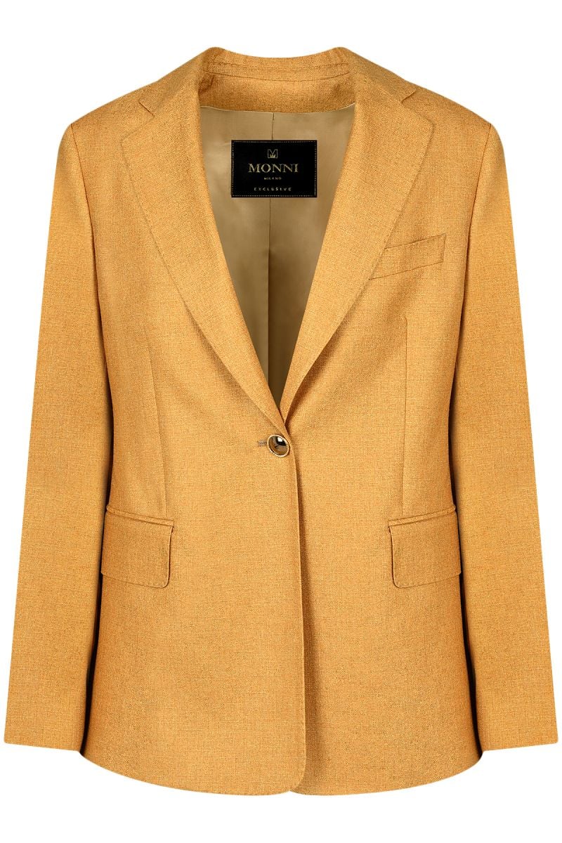 - Луксозно лятно дамско сако от коприна и кашмир в цвят светла охра.