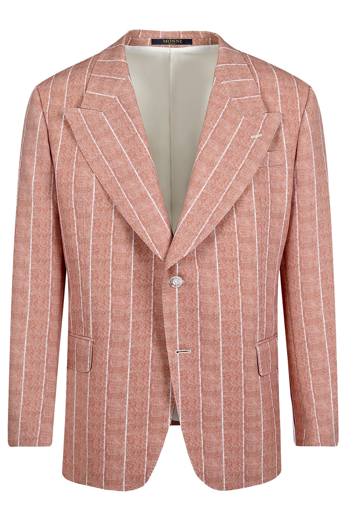 Mъжко луксозно сако с фино райе в цвят сьомга