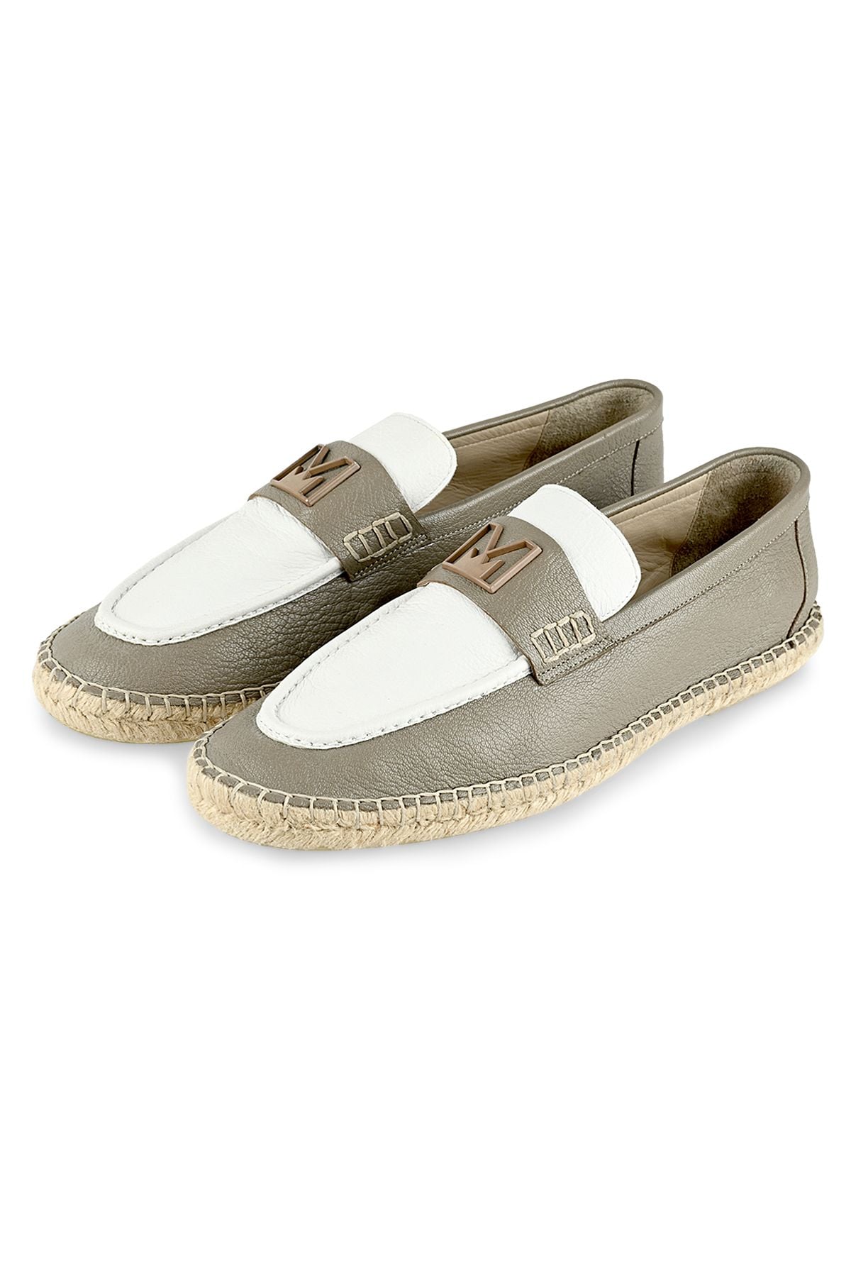 Мъжки дизайнерски еспадрили в бяло и бежово с метален елемент