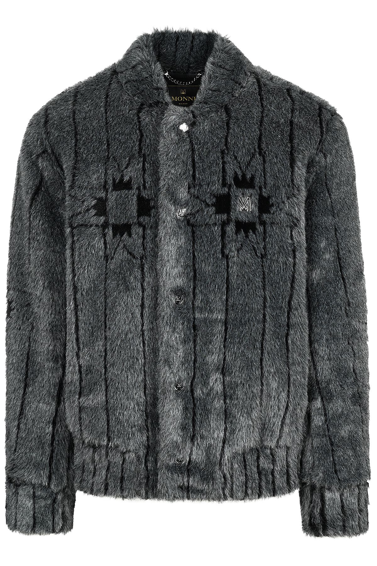 Мъжко дизайнерско луксозно яке с лого десен в сиво и черно