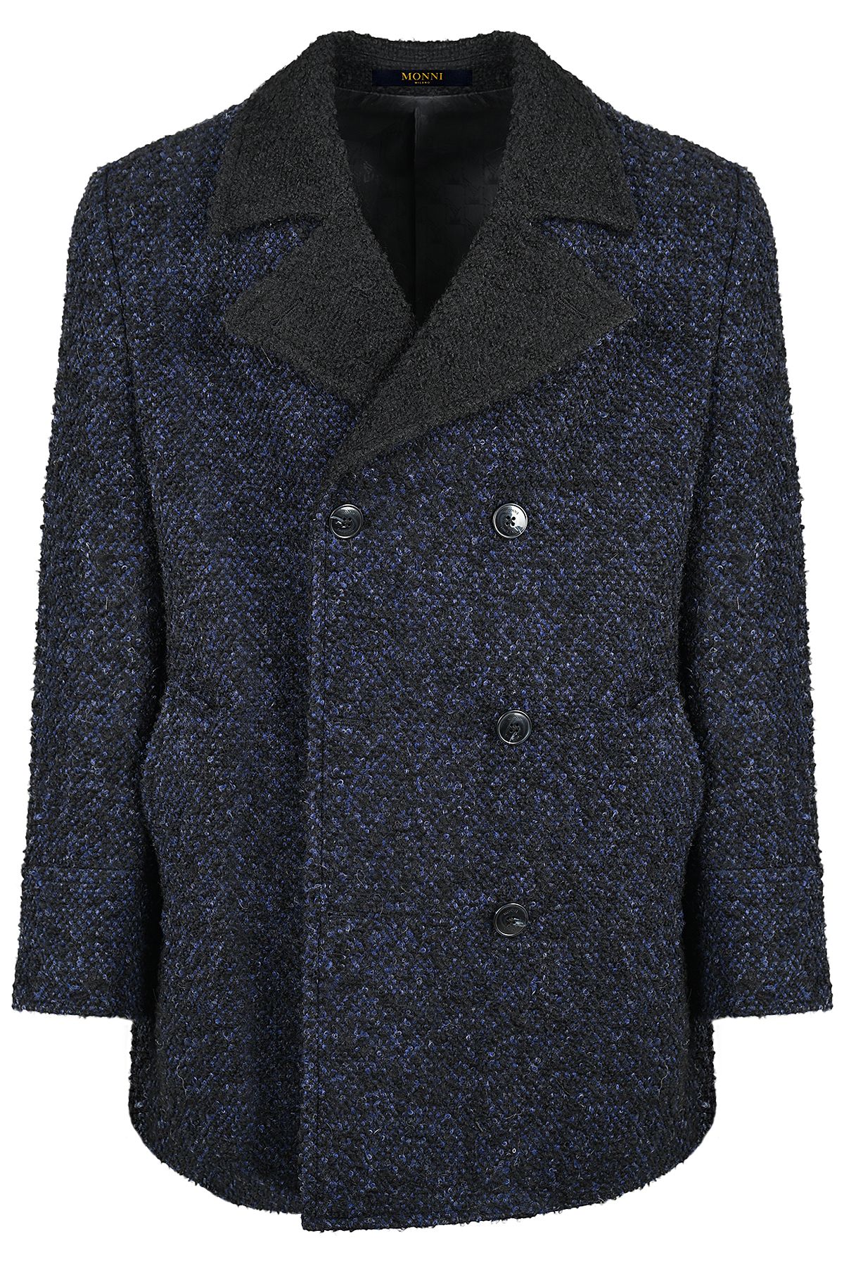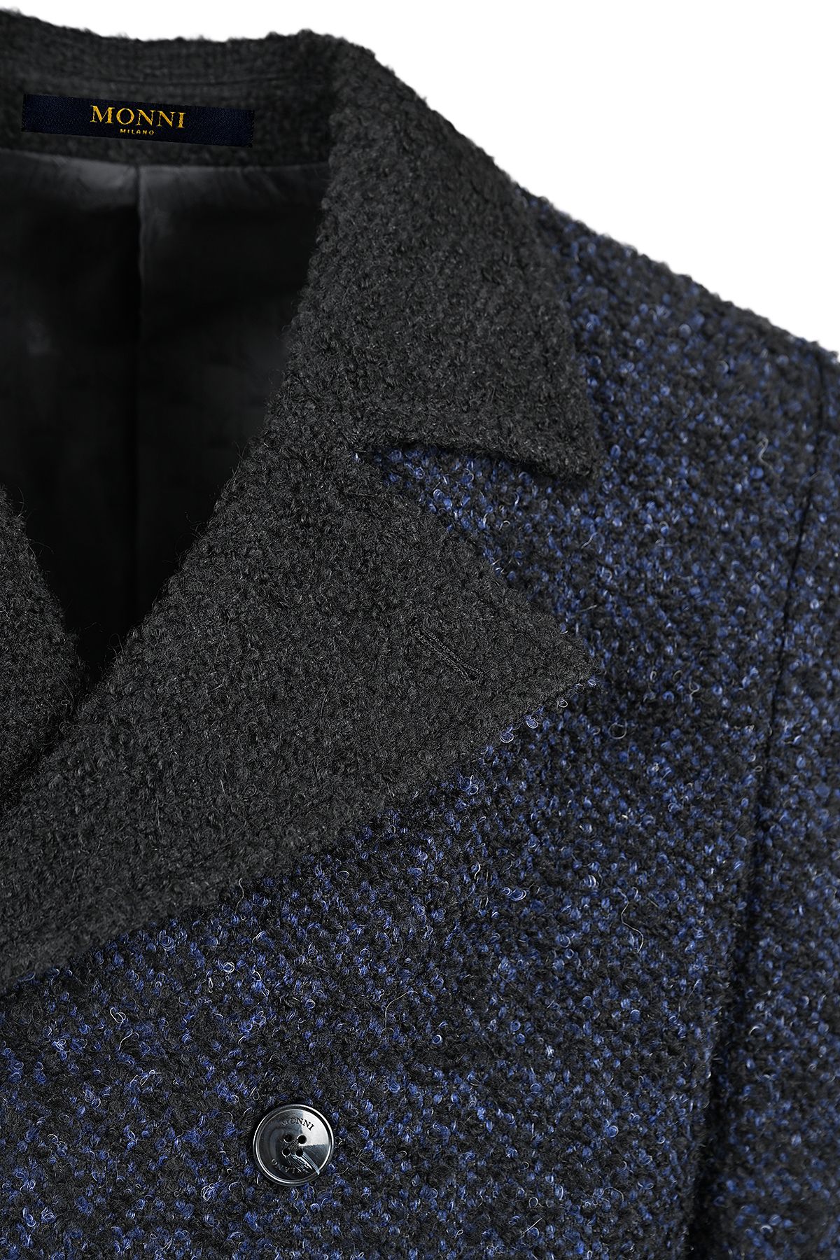 Мъжко двуредно палто от италиански плат букле в тъмносиньо