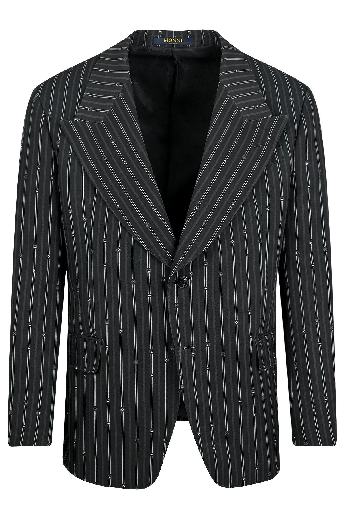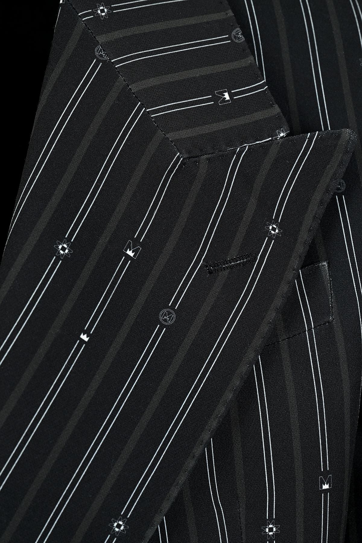 Едноредно луксозно мъжко сако в черно с фино брандирано райе в бяло
