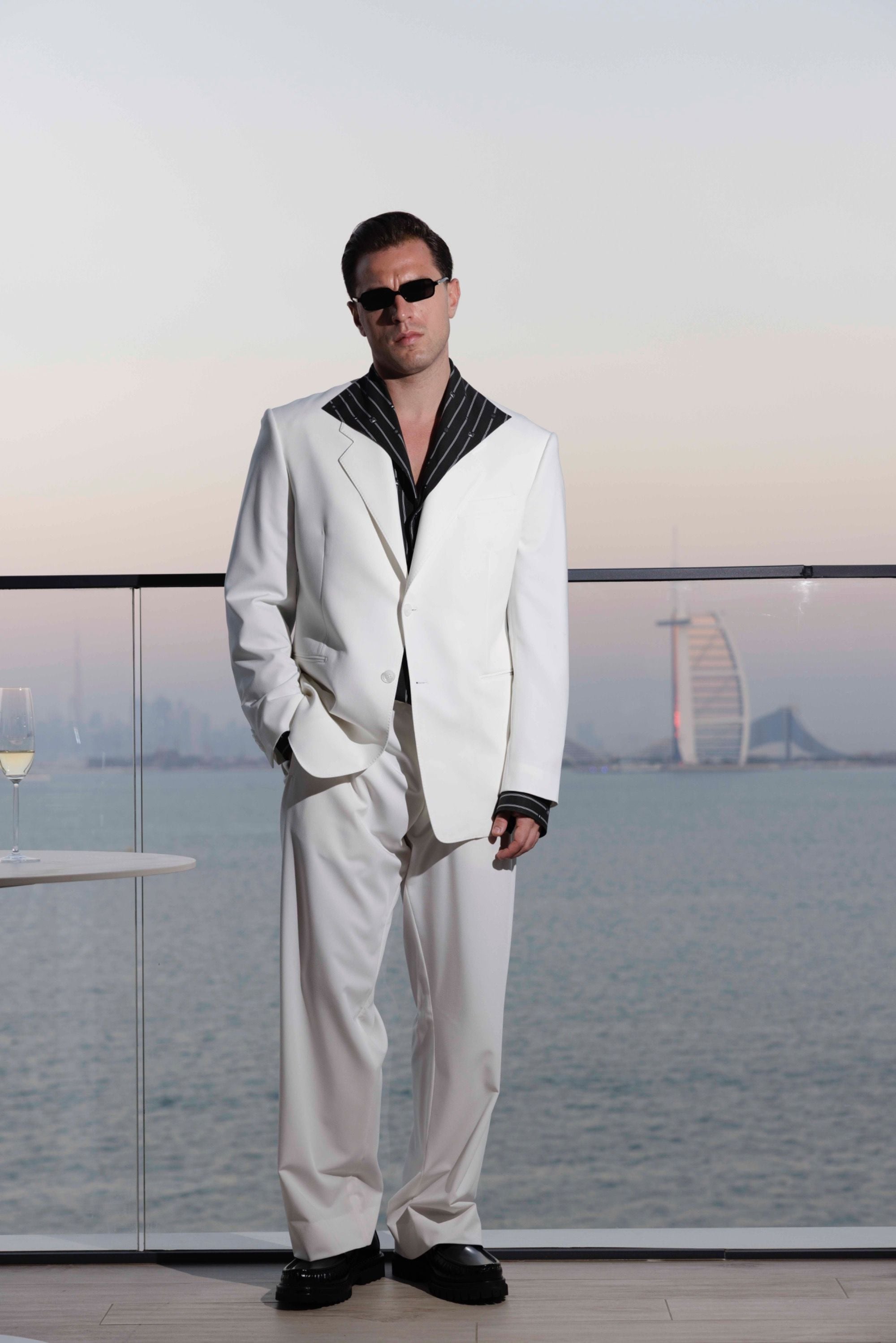 Мъжки луксозен дизайнерски Oversize костюм в бял цвят