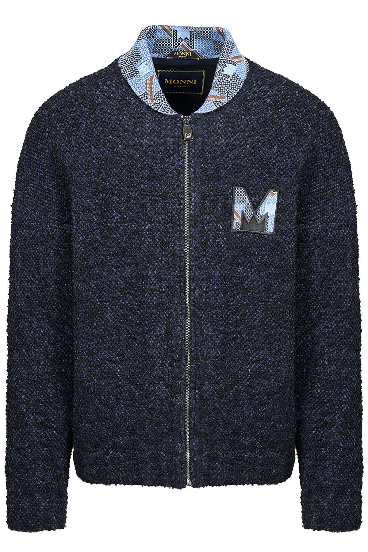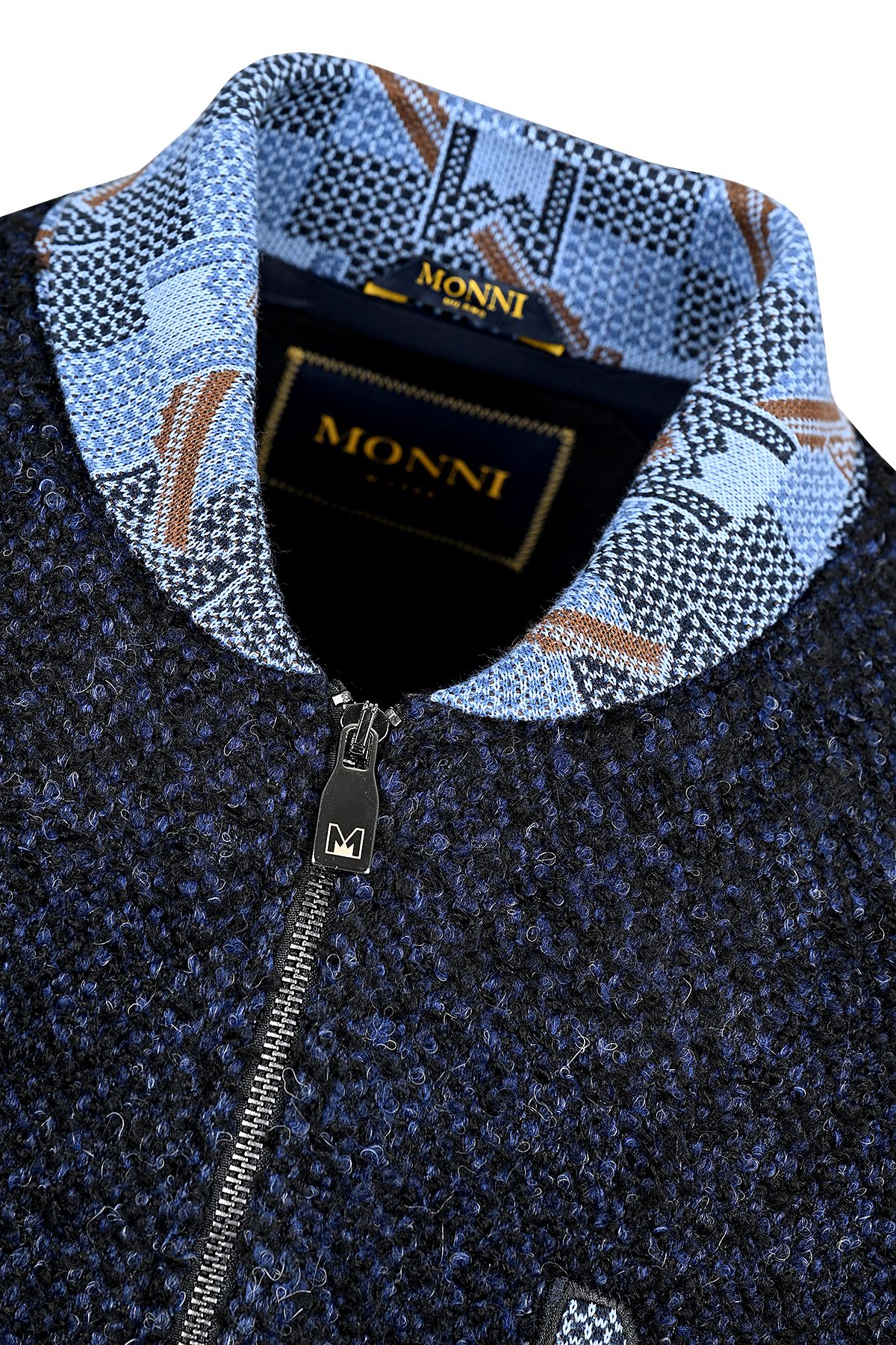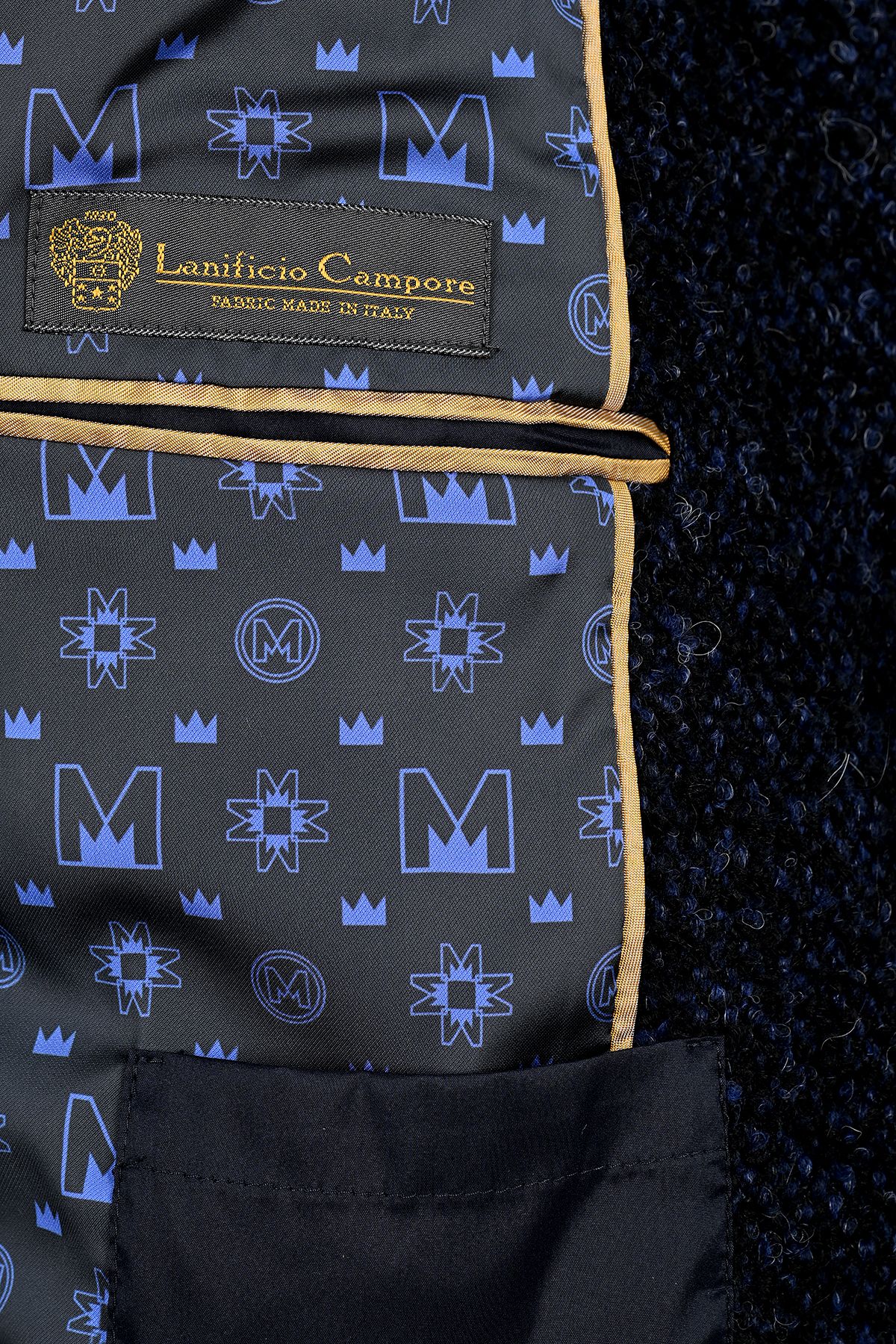 Мъжко яке тип жилетка в синьо от букле плат с вълна от алпака