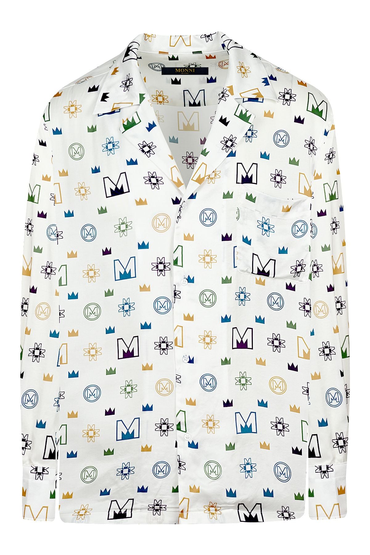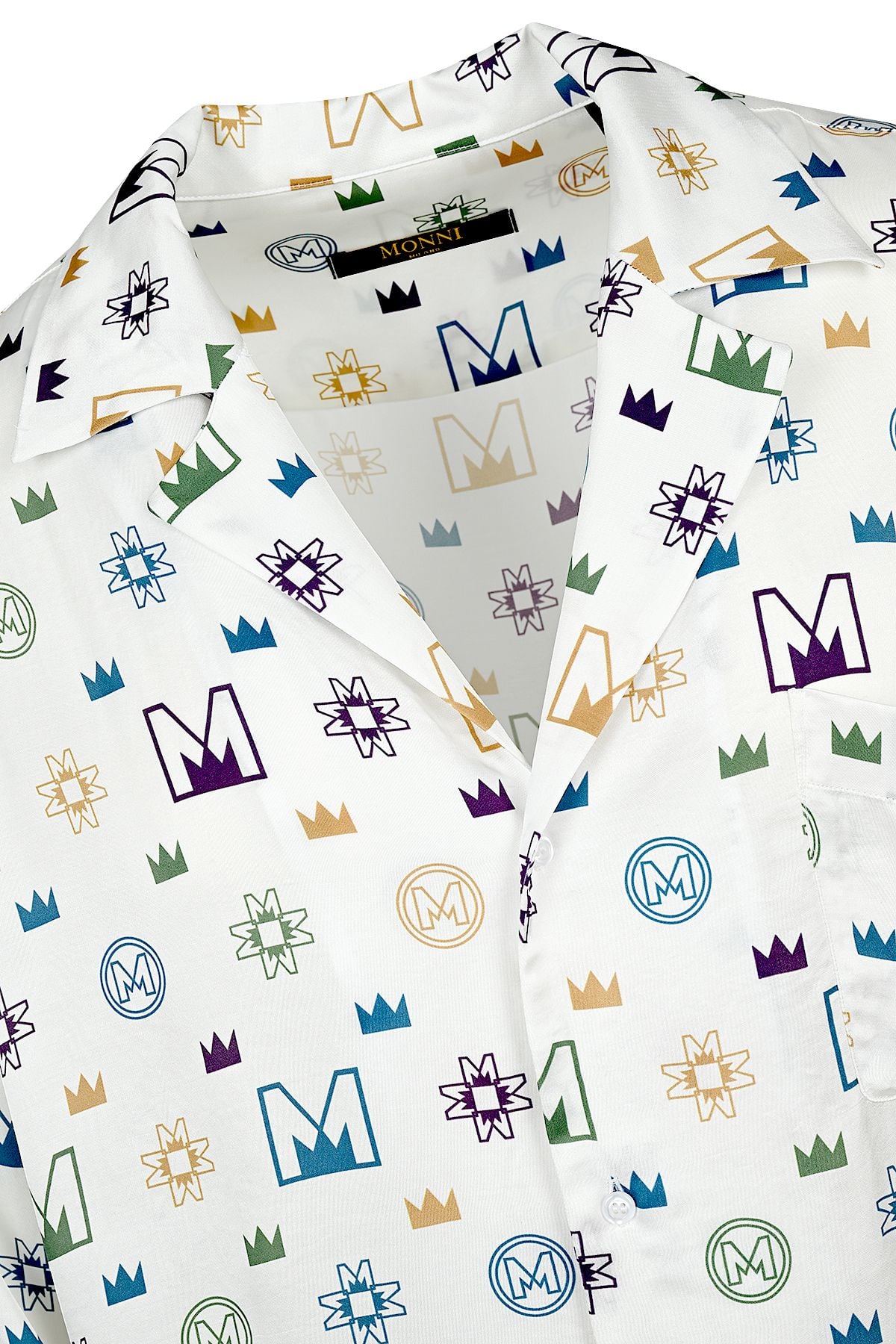 Мъжка принтирана памучна риза Praiano Symbols в бяло