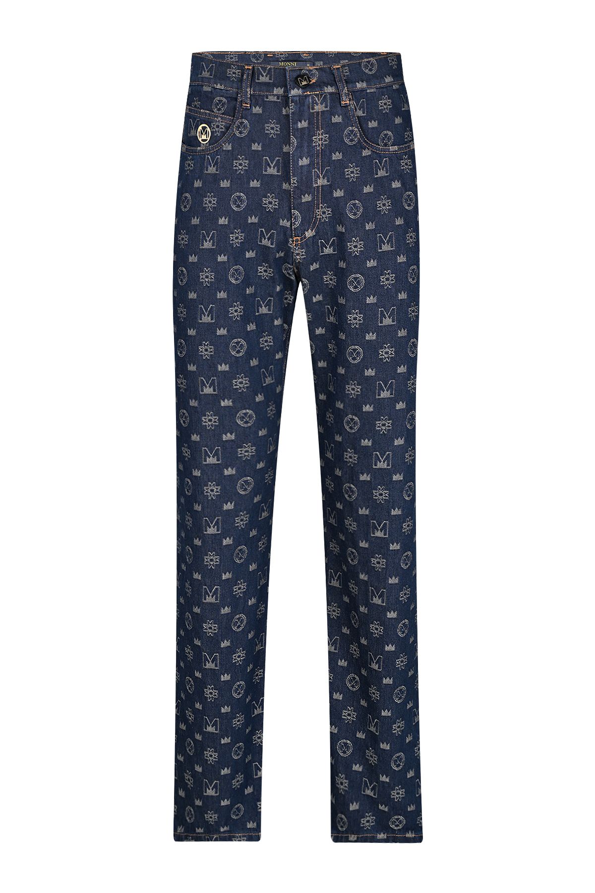 Мъжки свободни дизайнерски дънки с десен символи в синьо