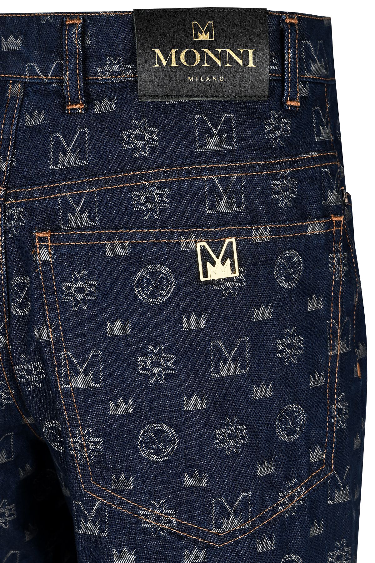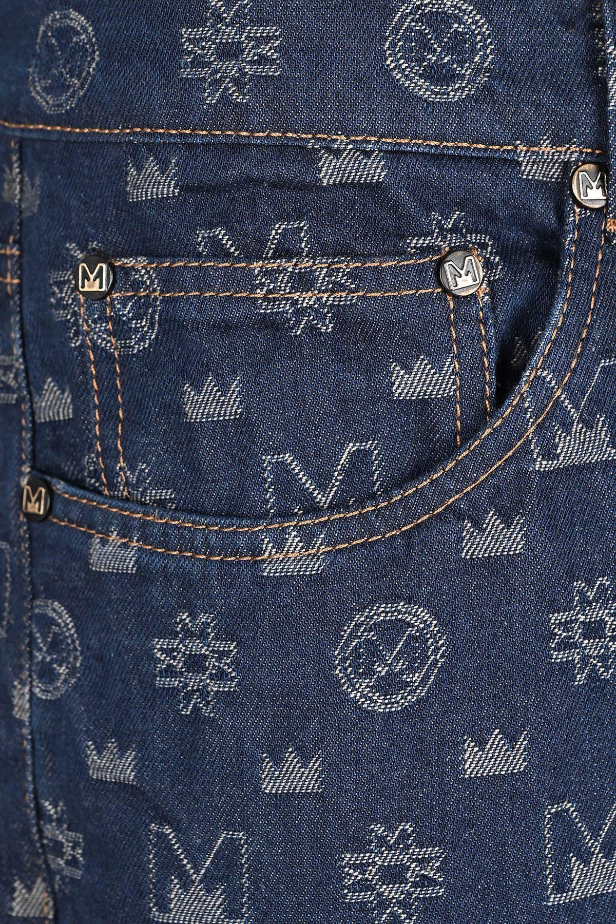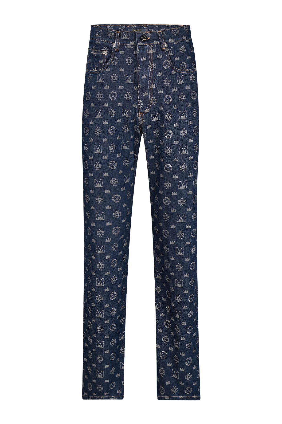 Мъжки луксозни дизайнерски дънки с десен символи в синьо