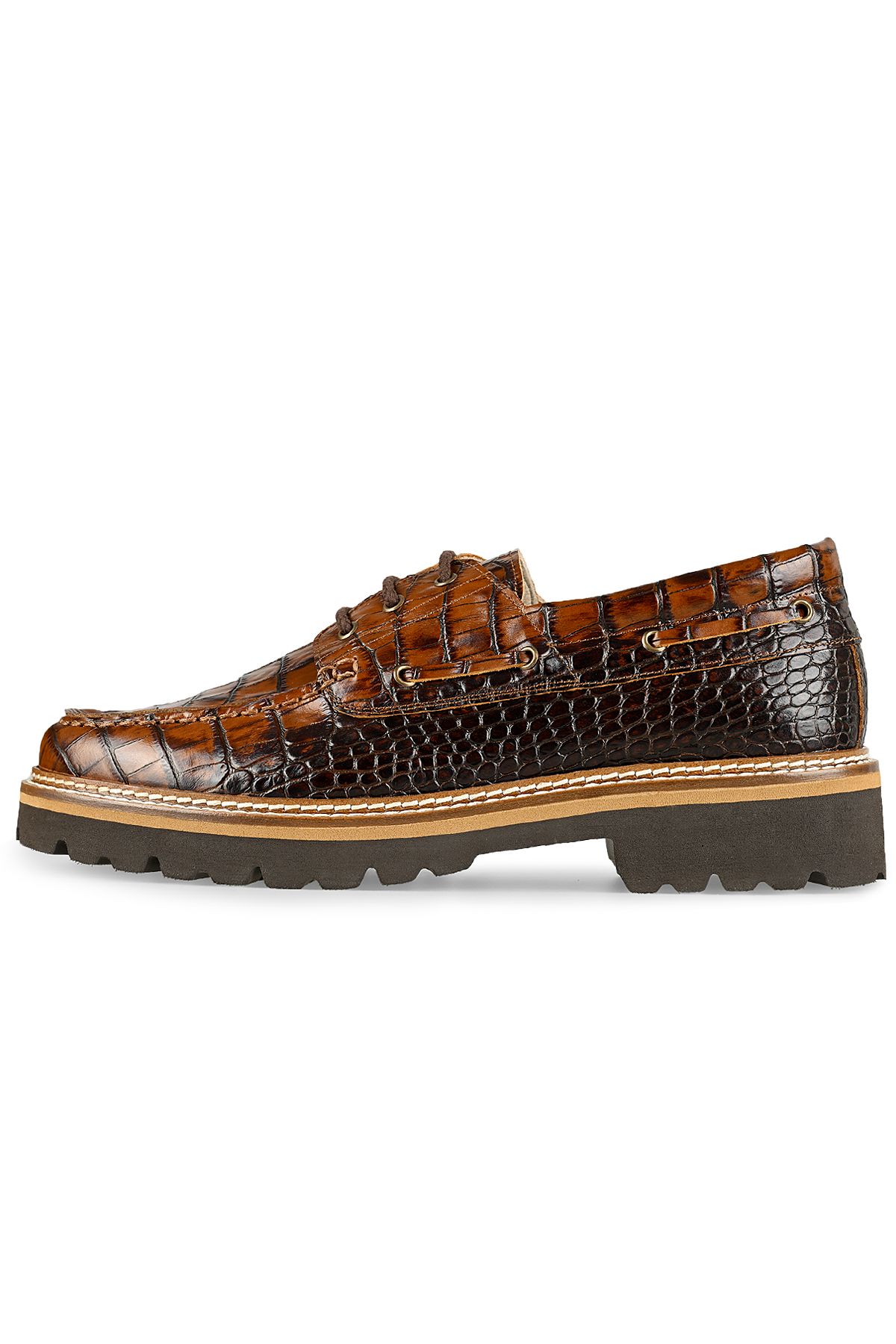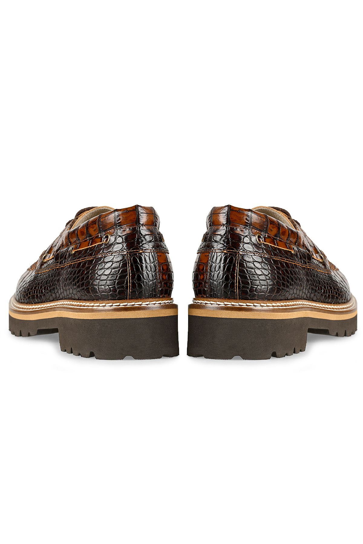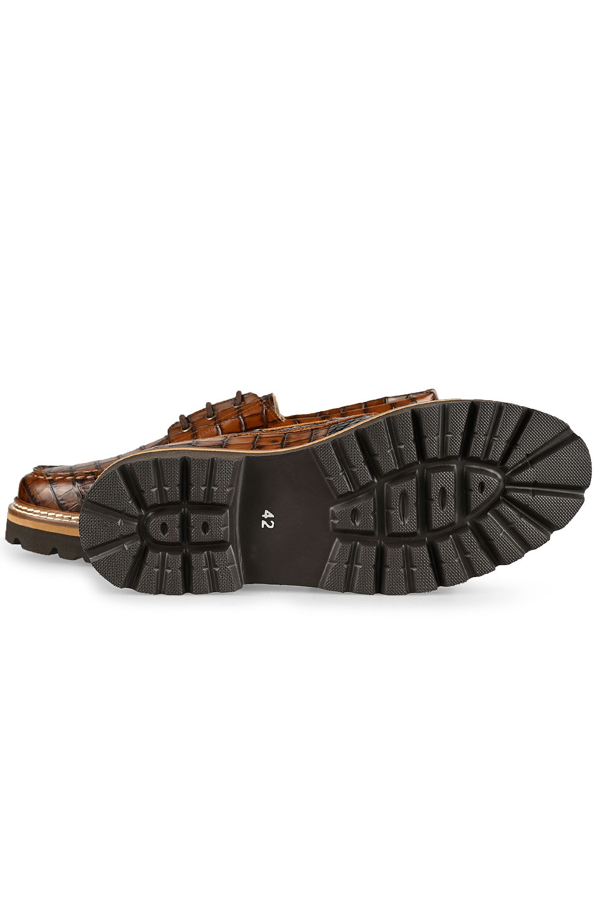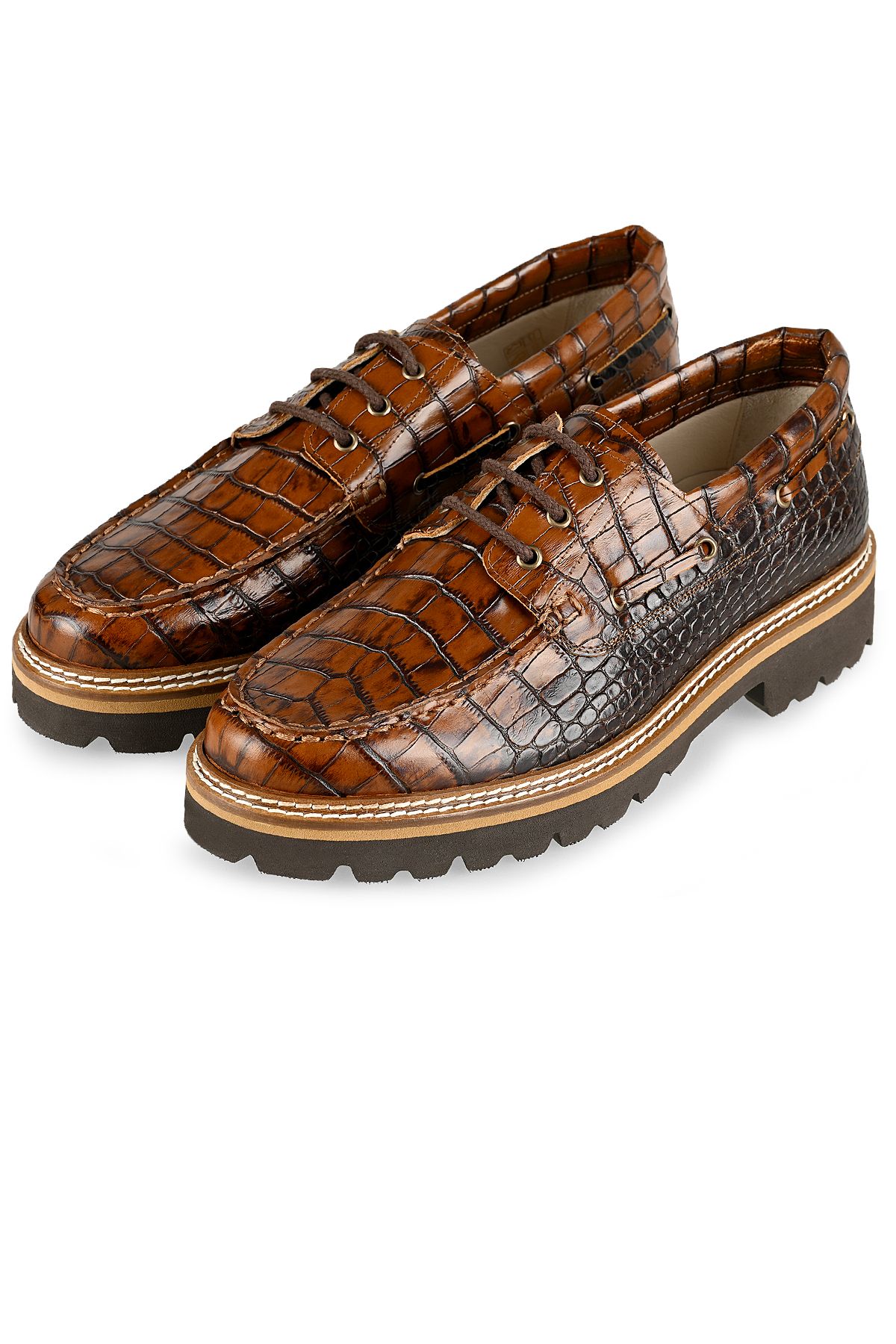 Мъжки кафяви обувки с ефект крокодил и висока подметка