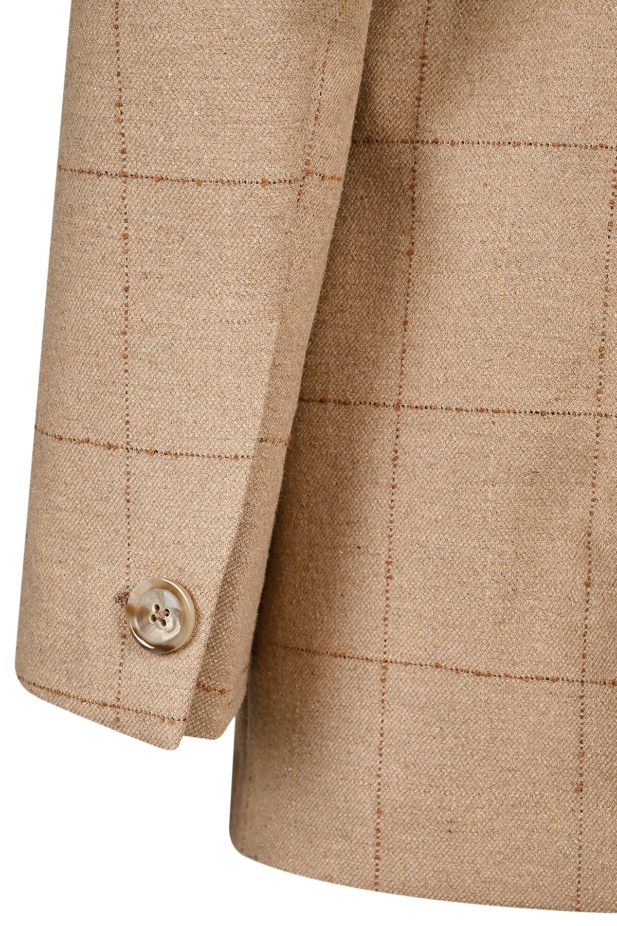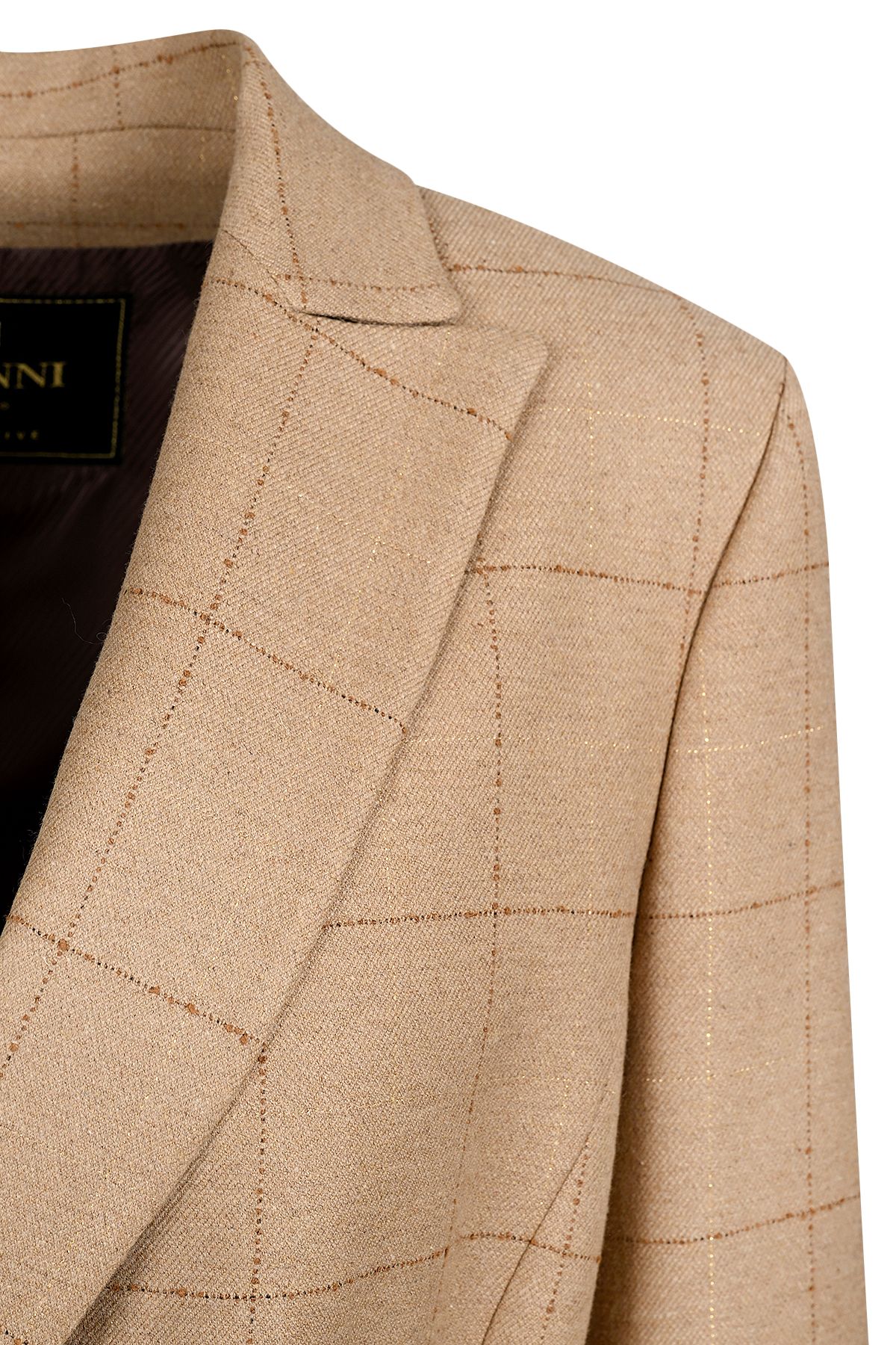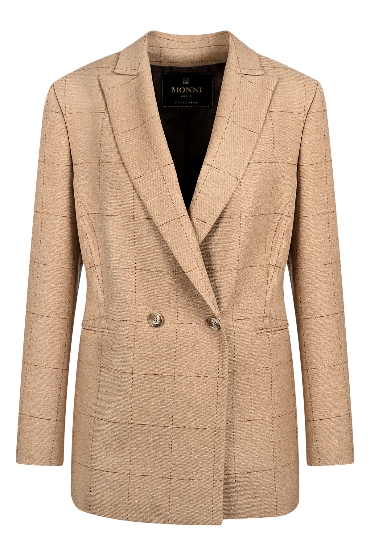 Двуредно дамско сако от кариран вълнен плат с лурекс