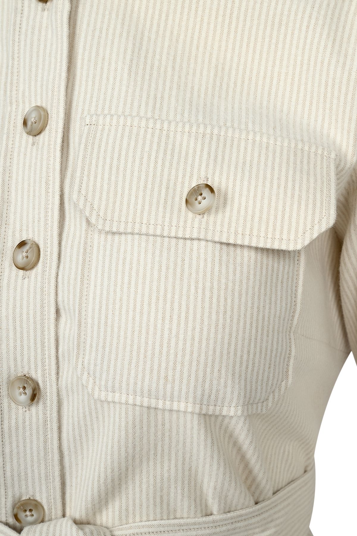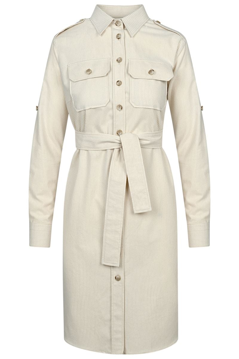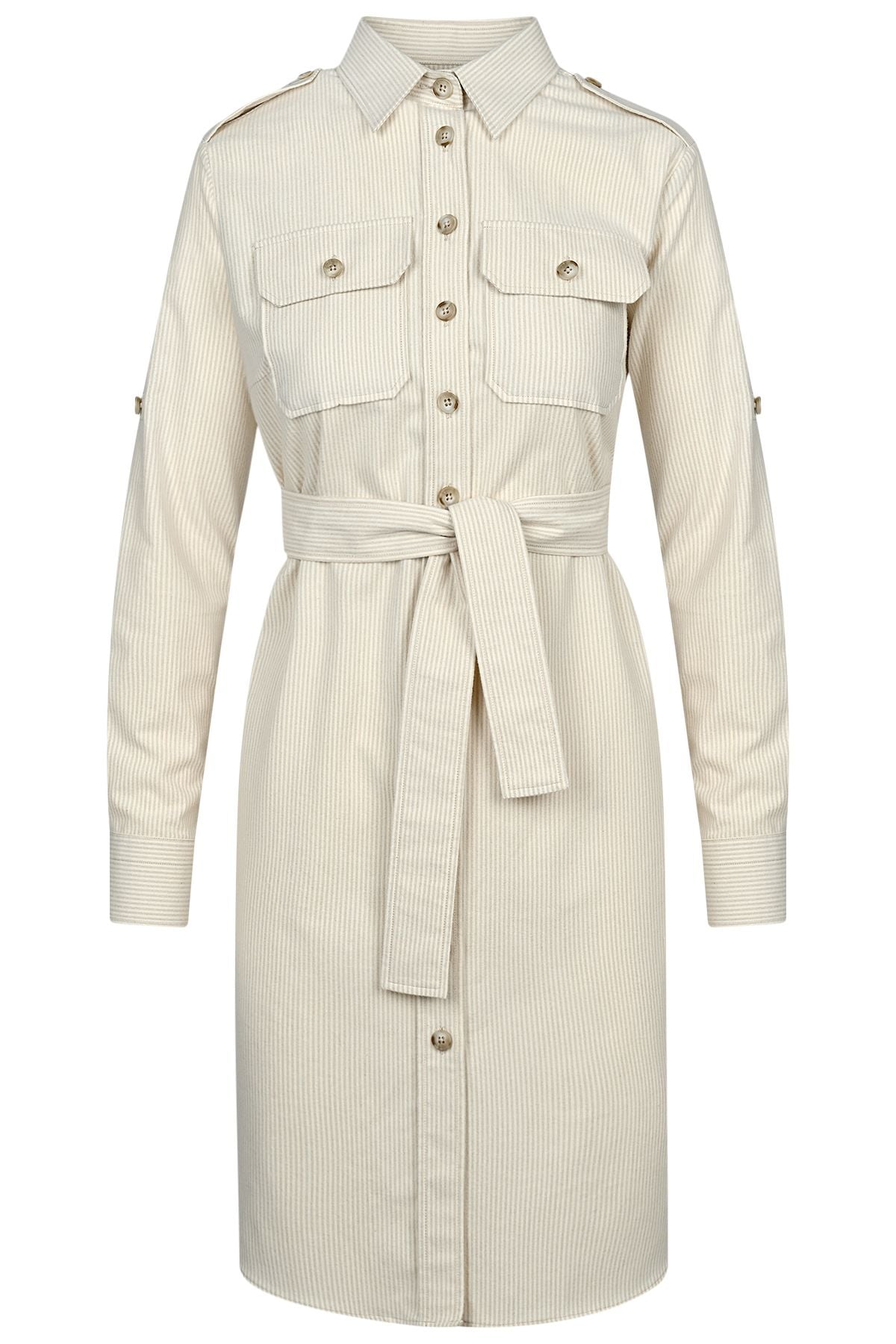 - Дамска дълга риза рокля тип Сафари от памук в цвят екрю.