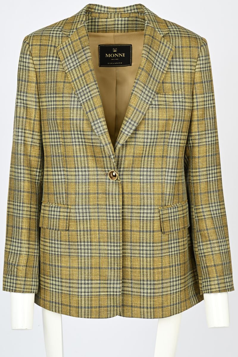 Свободно лятно дамско сако от вълна в каре Principe Di Galles в жълто и тъмнозелено