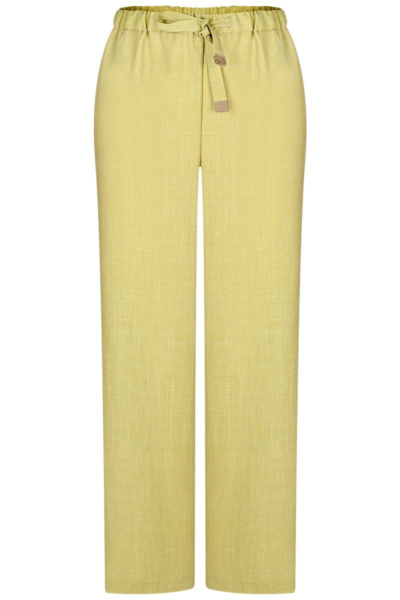 - Лежерен дамски панталон с връзки от плат Loro Piana в жълто.