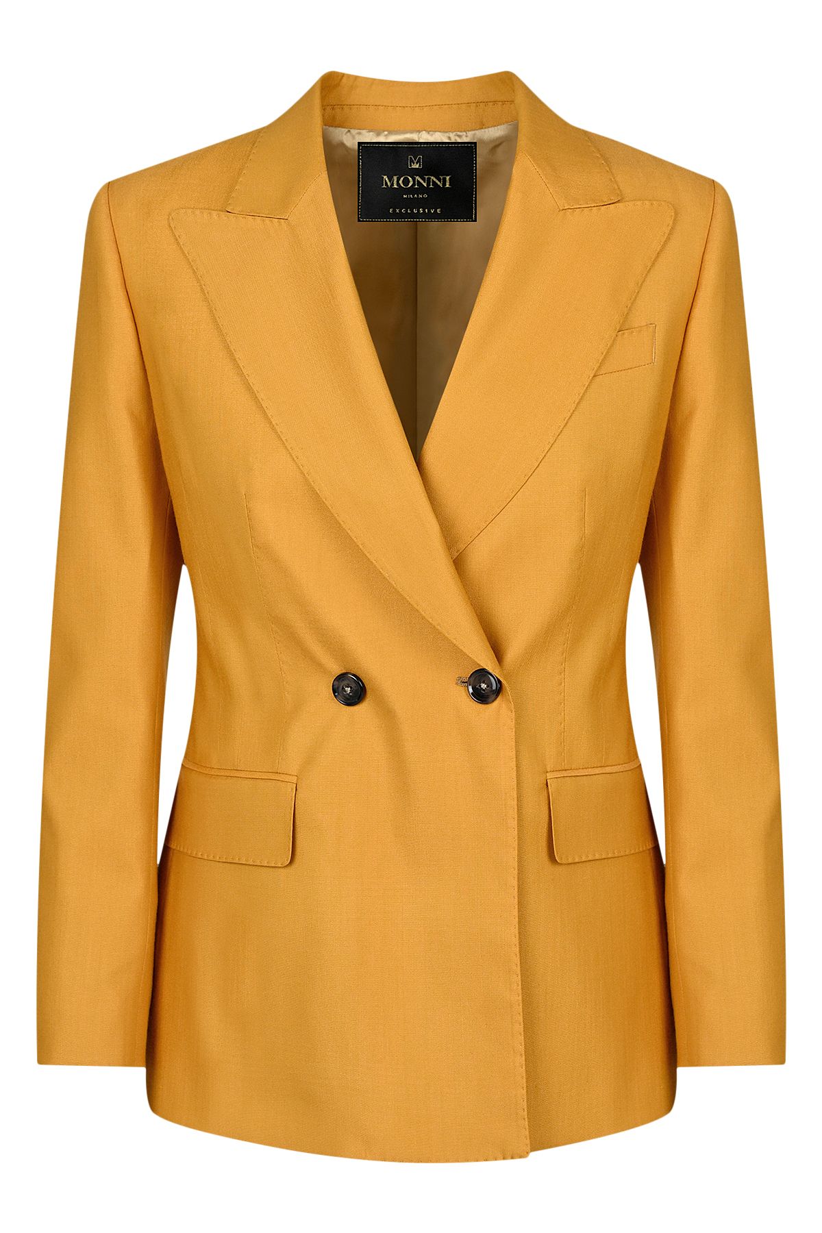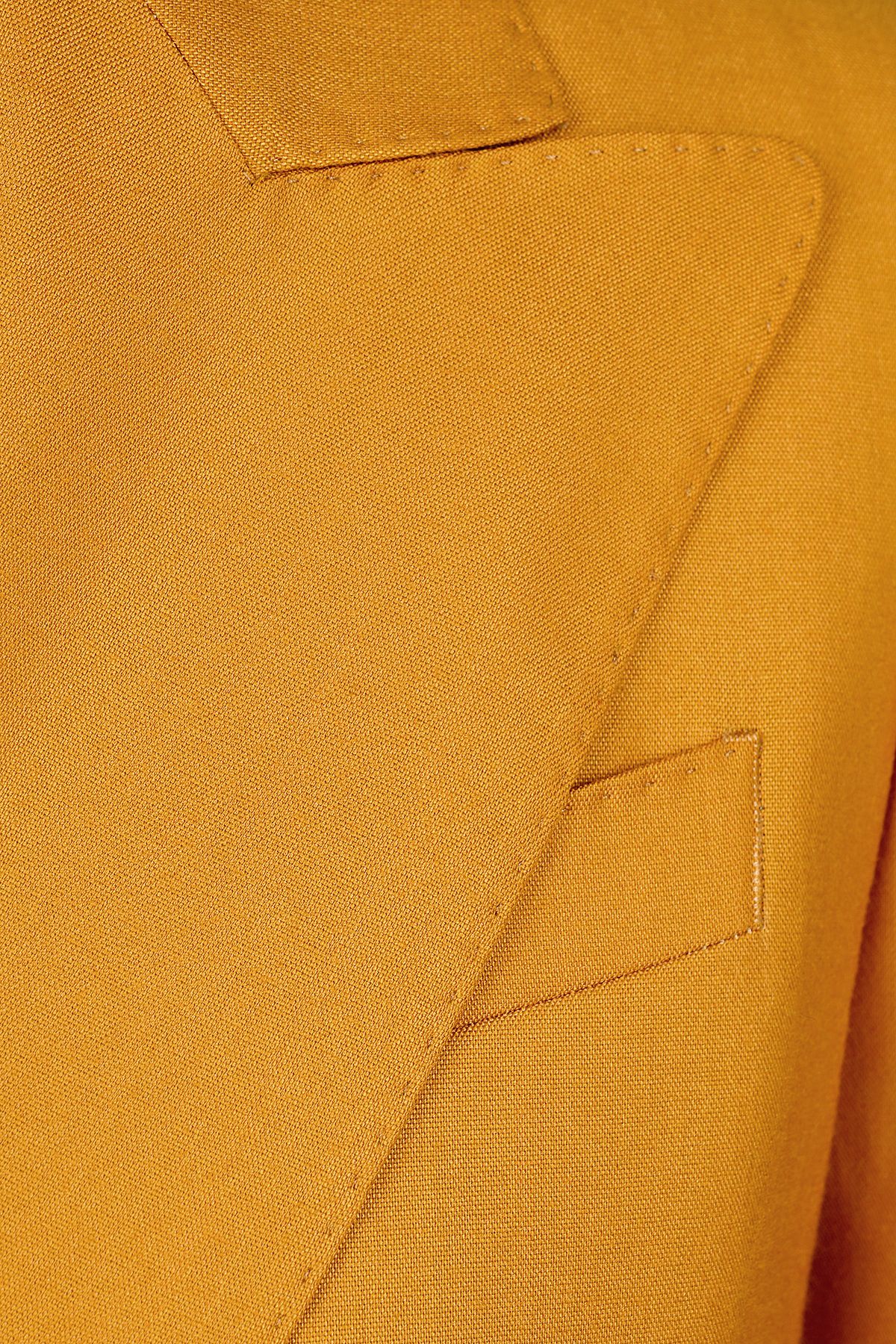 Елегантен двуреден дамски костюм в цвят светла охра от вълна и еластан