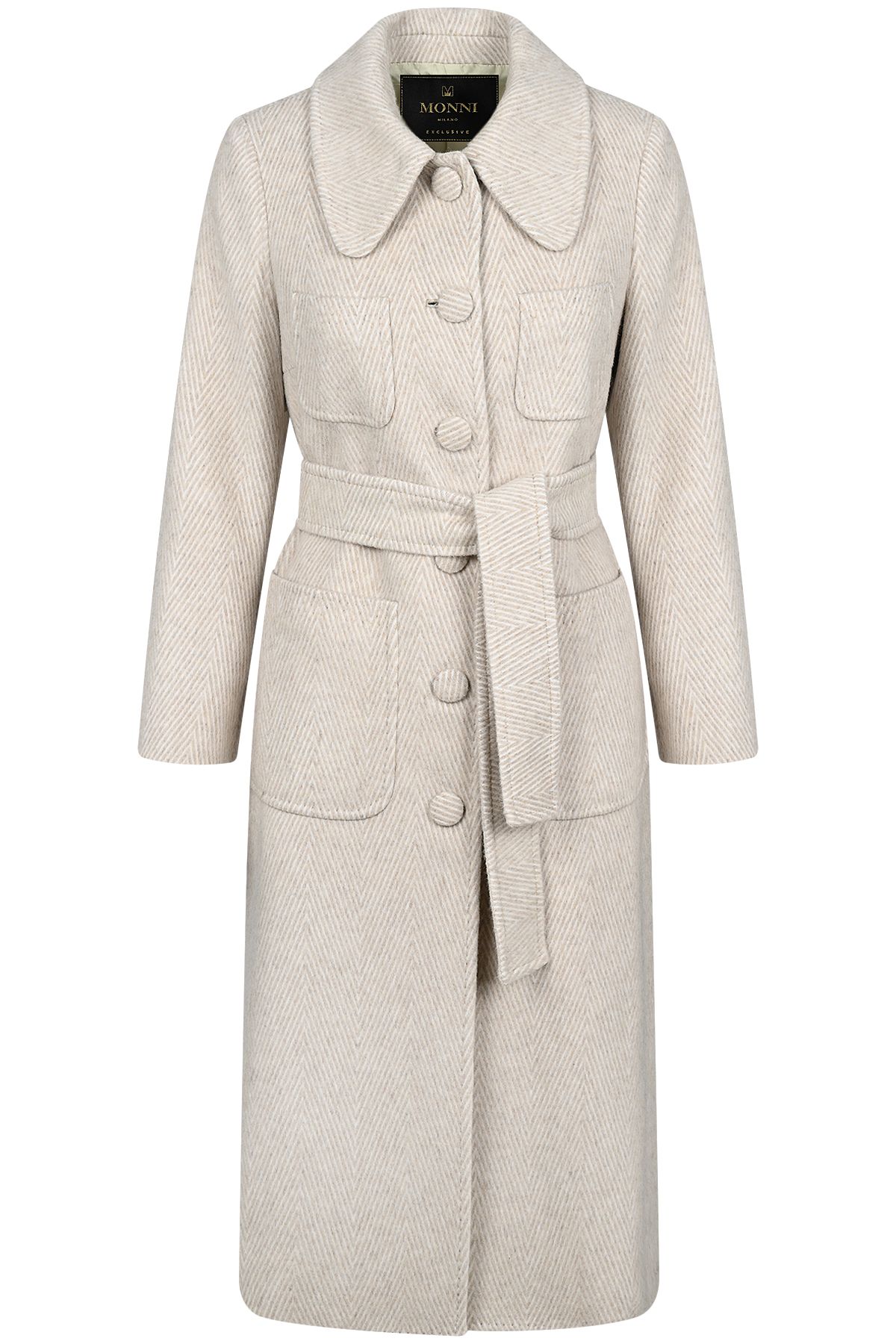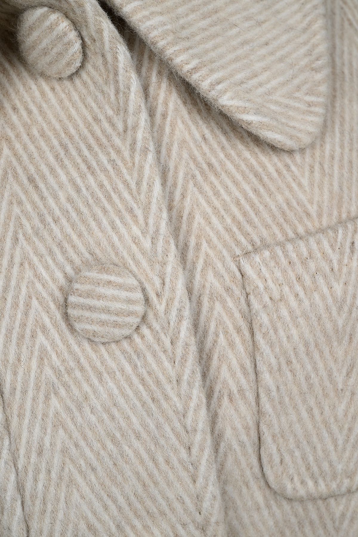 Дамско вълнено бежаво палто от релефен дизайнерски плат Made in Italy