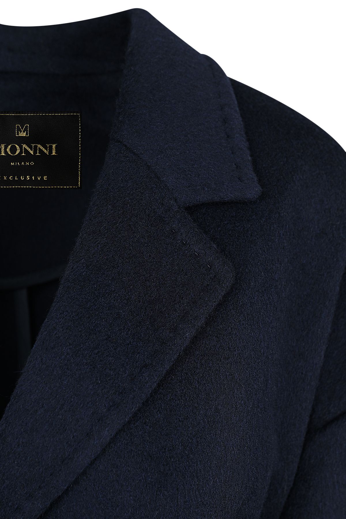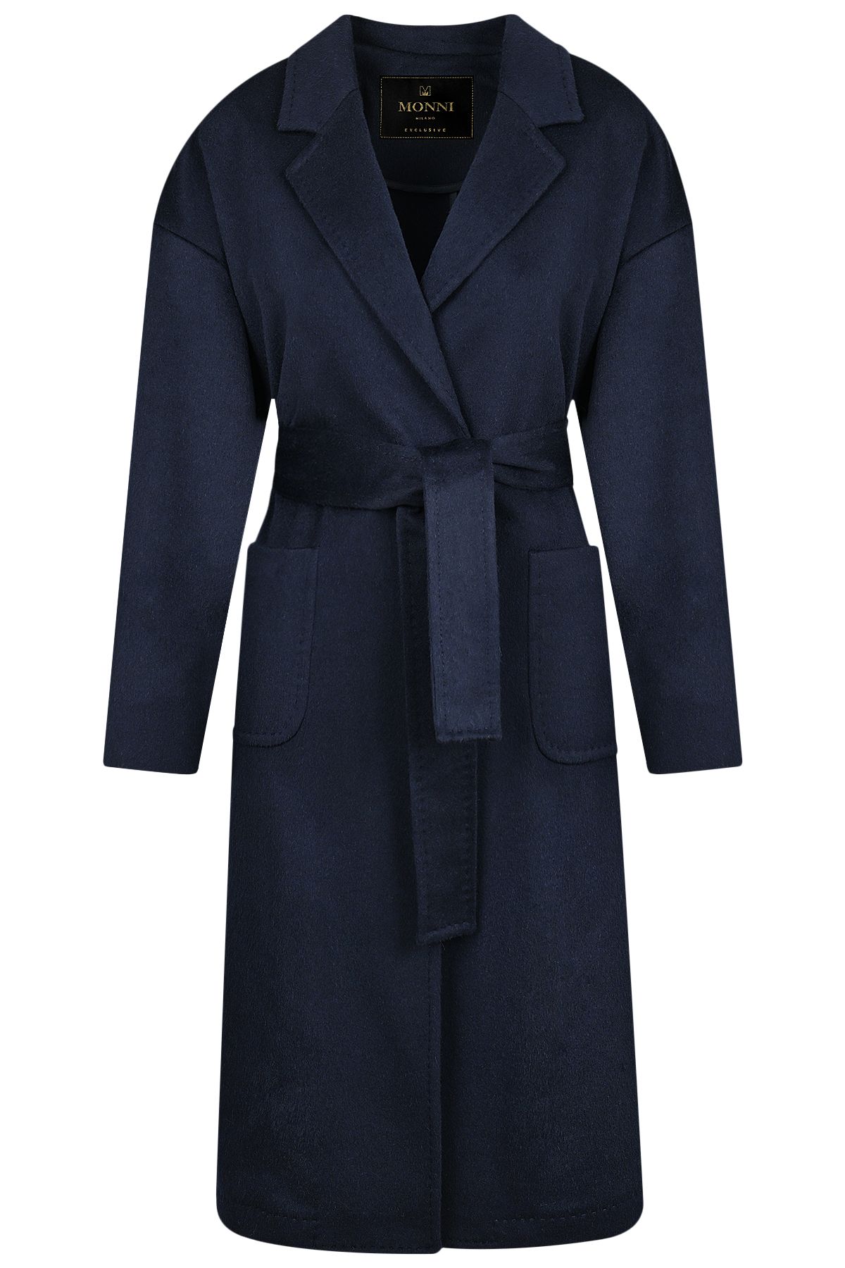 Елегантно палто от вълна и кашмир с външни джобове и колан в тъмно син цвят