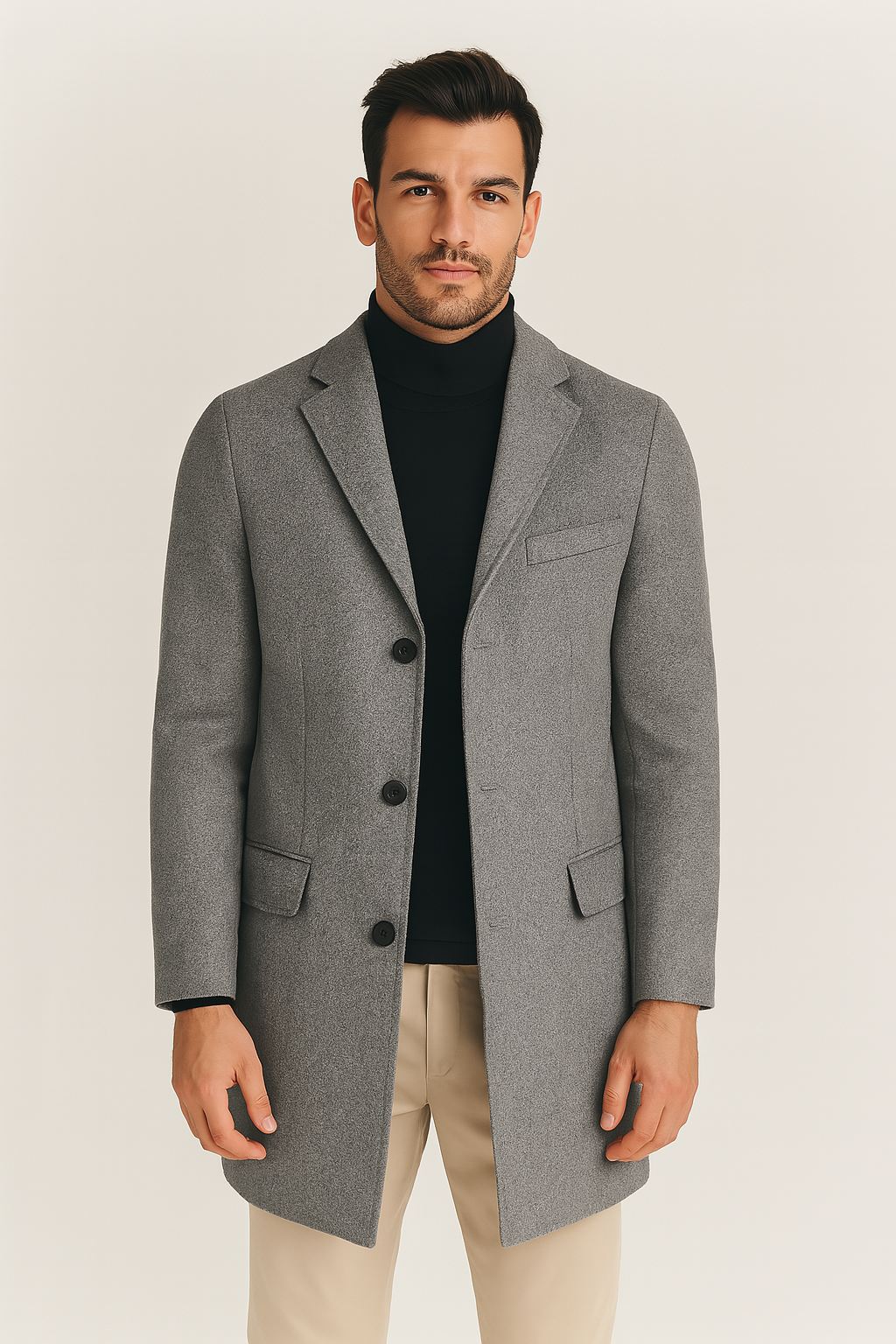 Мъжко класическо палто от вълна с лъскав ефект в сив цвят