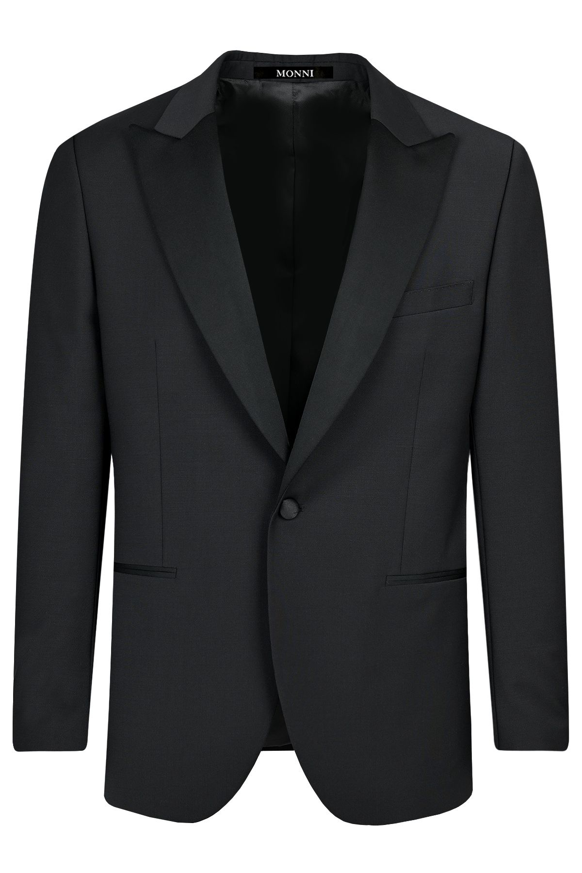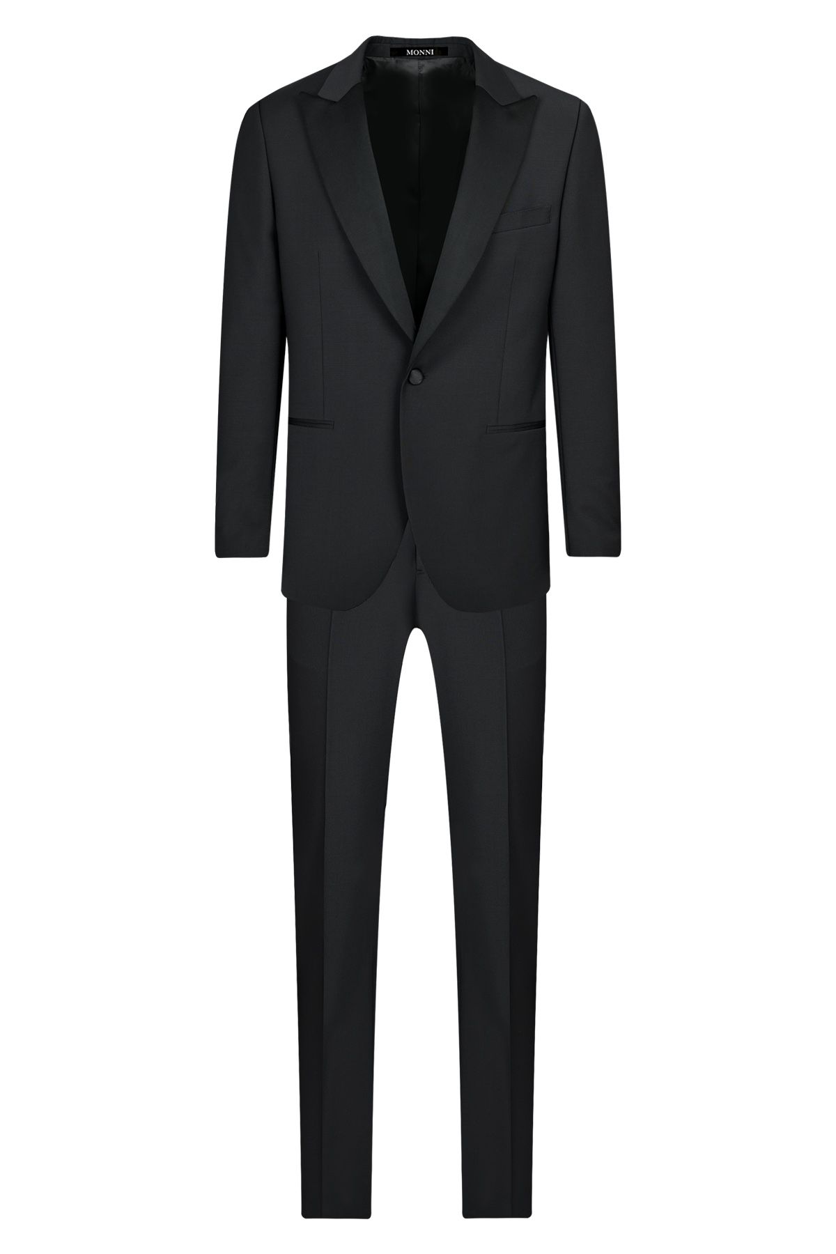 Мъжки втален официален костюм в черно със сатениран остър ревер