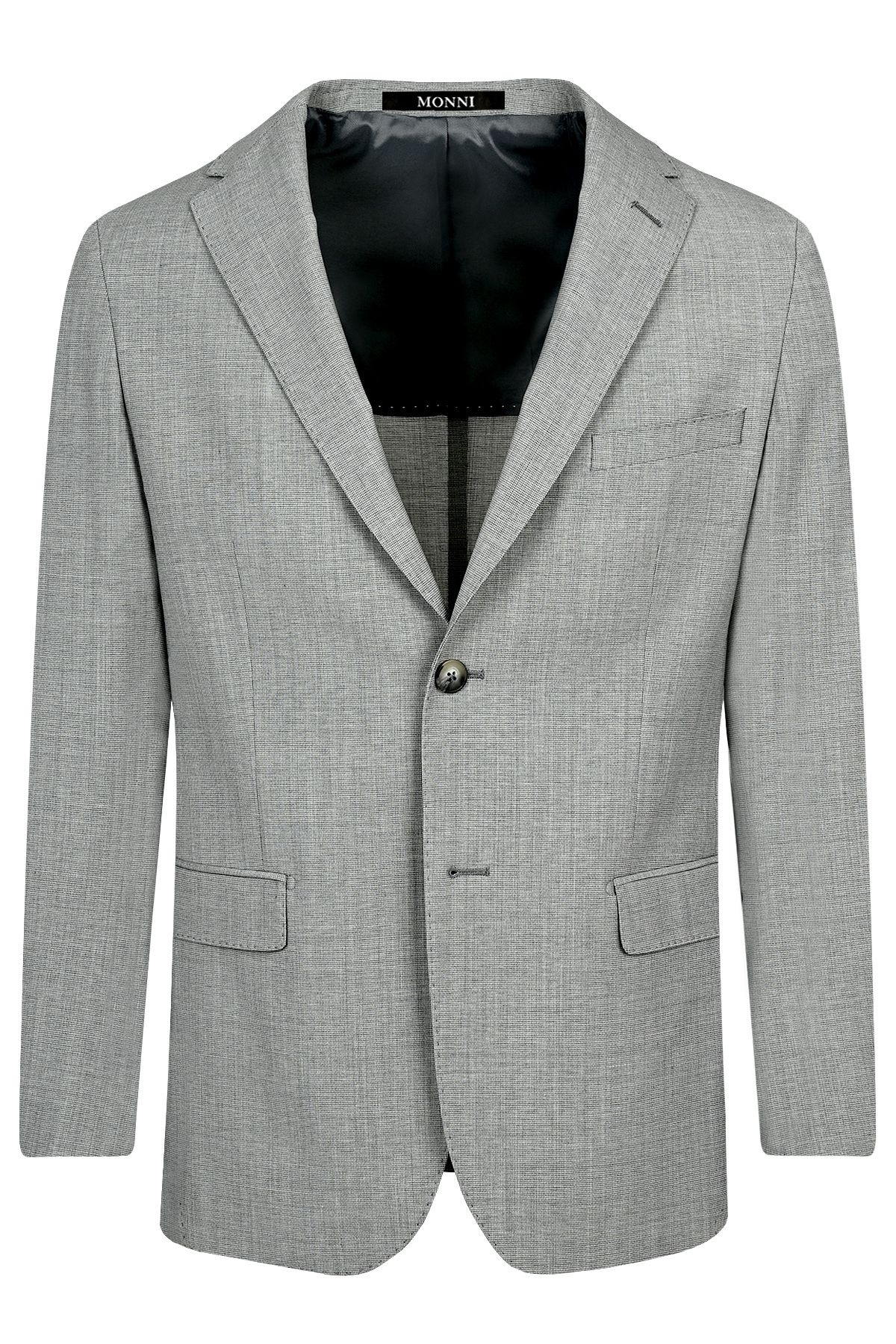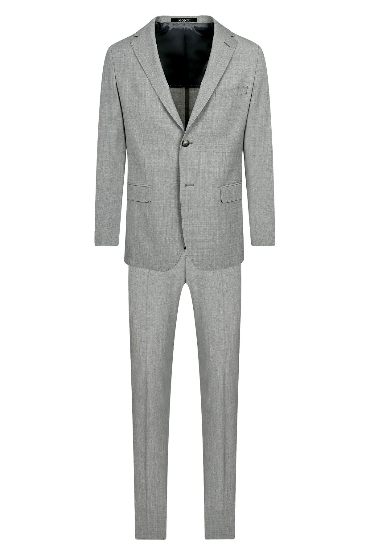 Мъжки втален класически костюм от вълна и еластан в светлосиво