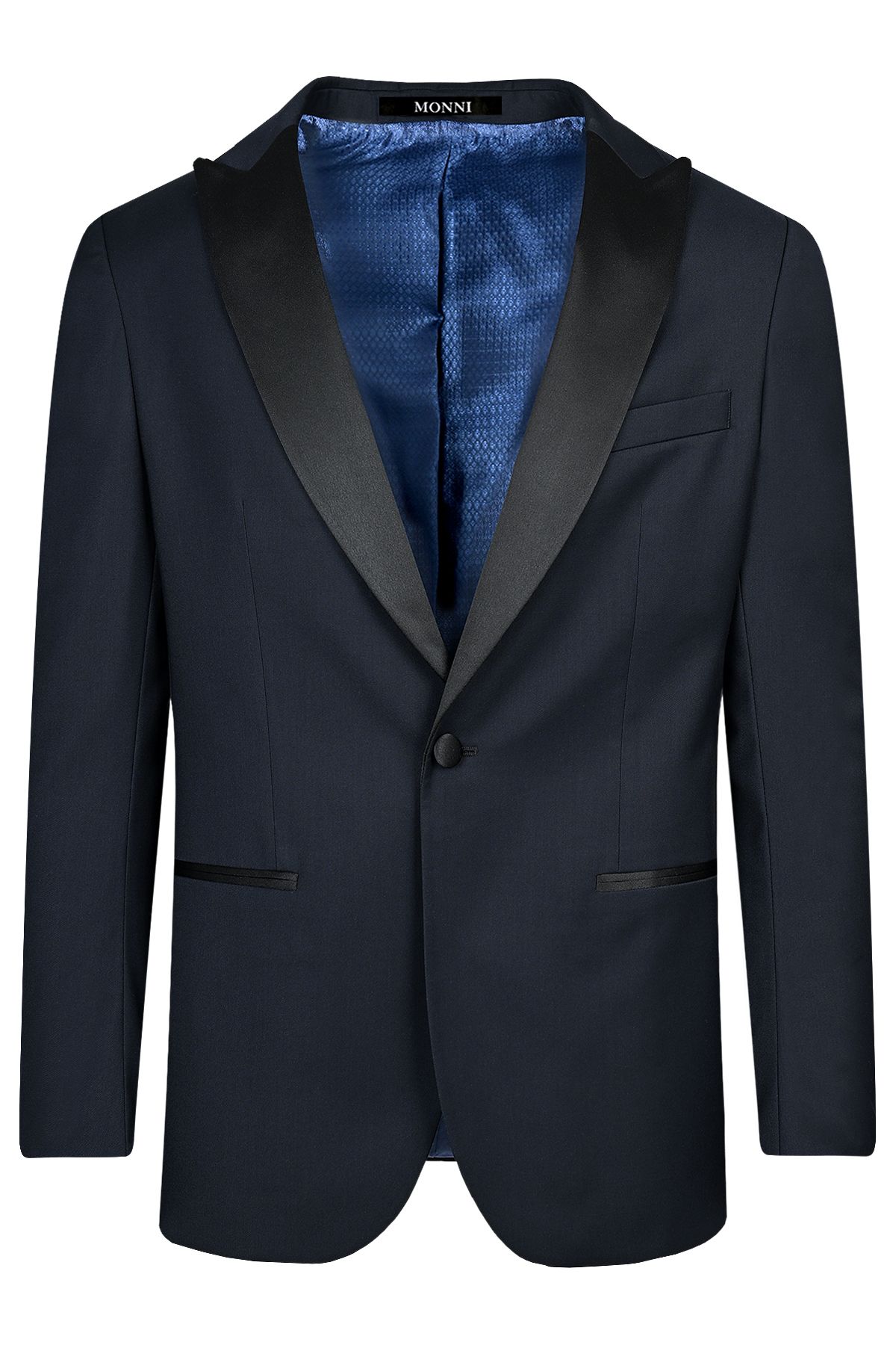 Мъжки втален тъмносин смокинг със сатениран широк остър ревер