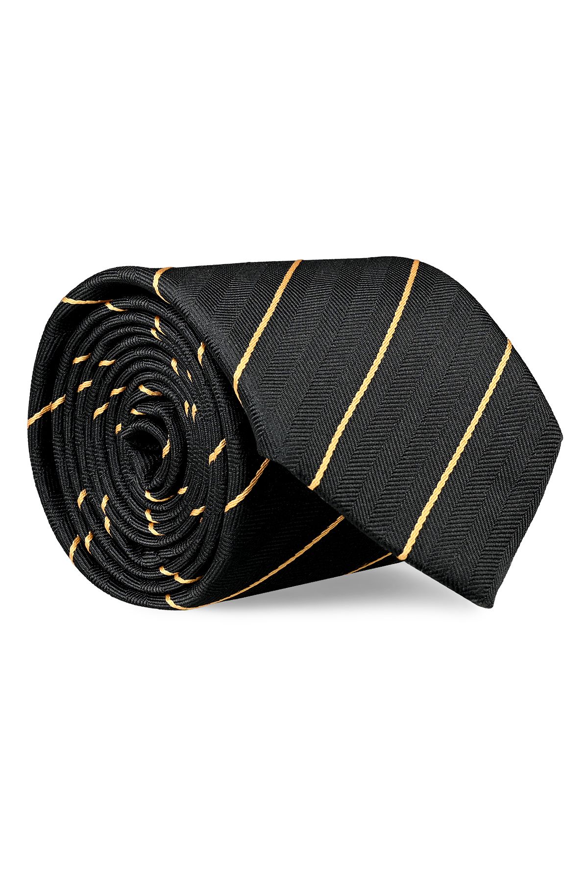 Мъжка черна вратовръзка с дизайн с ярко жълто райе