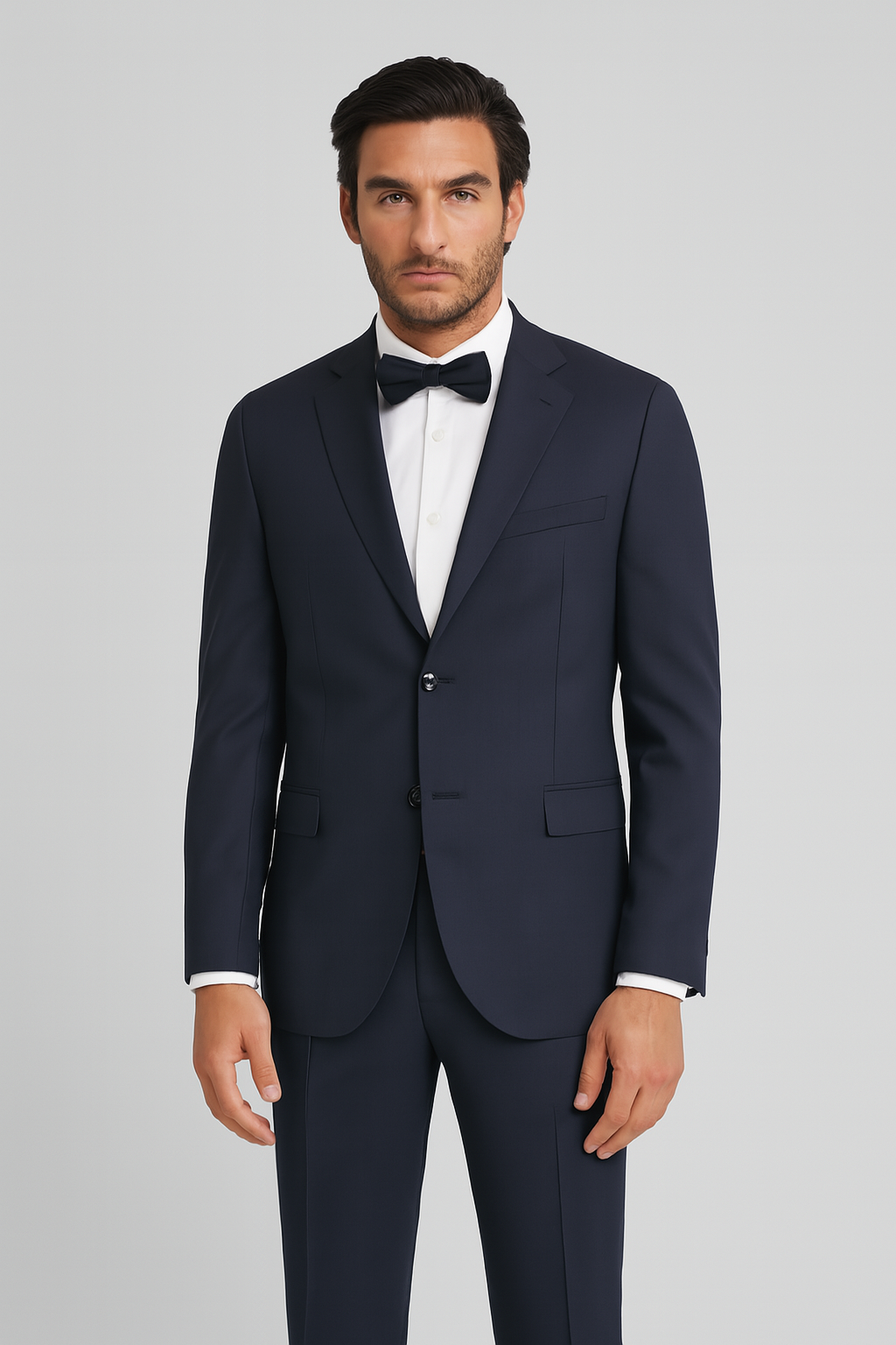 Мъжки класически костюм от 100% вълна в тъмносиньо
