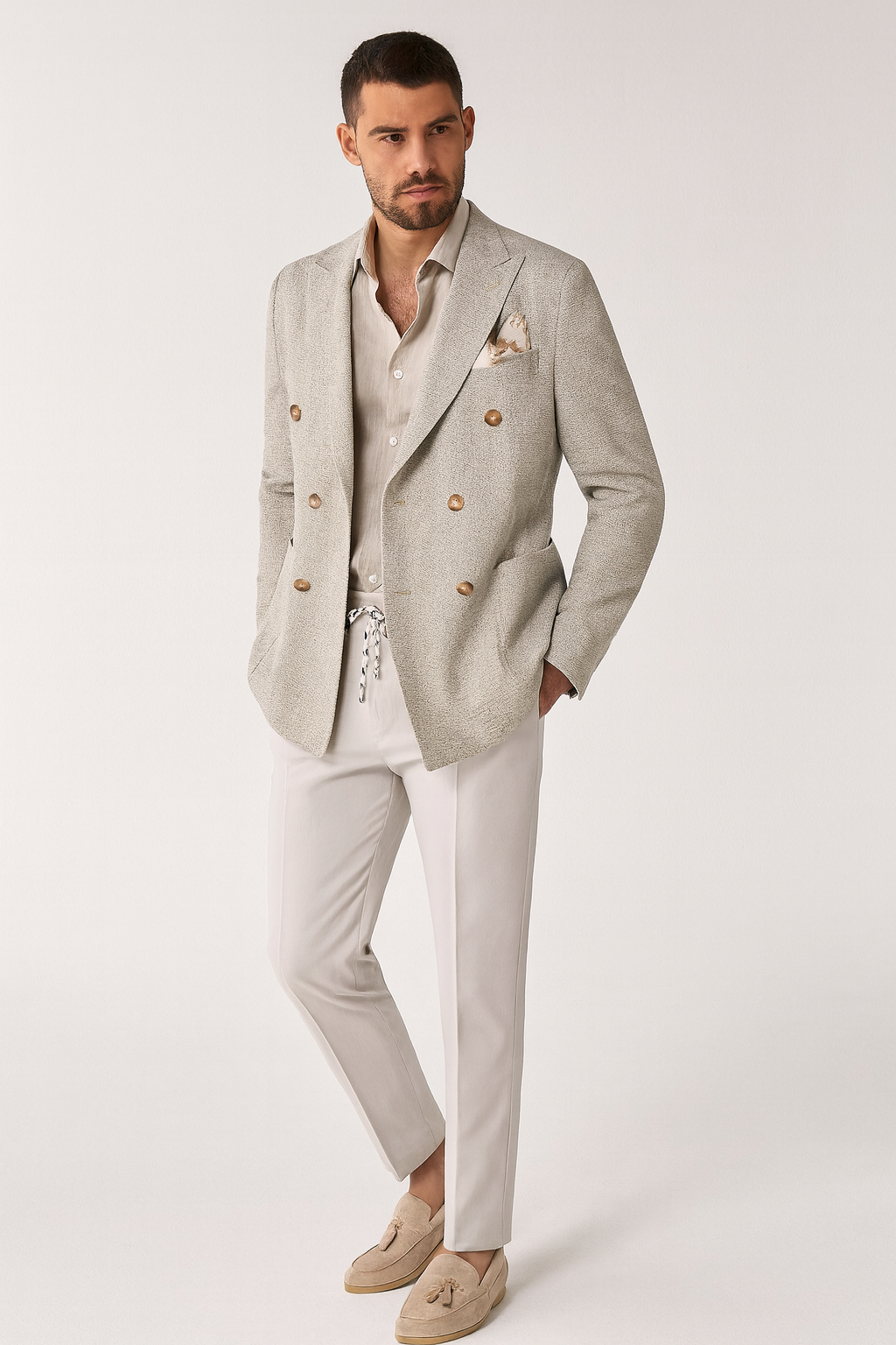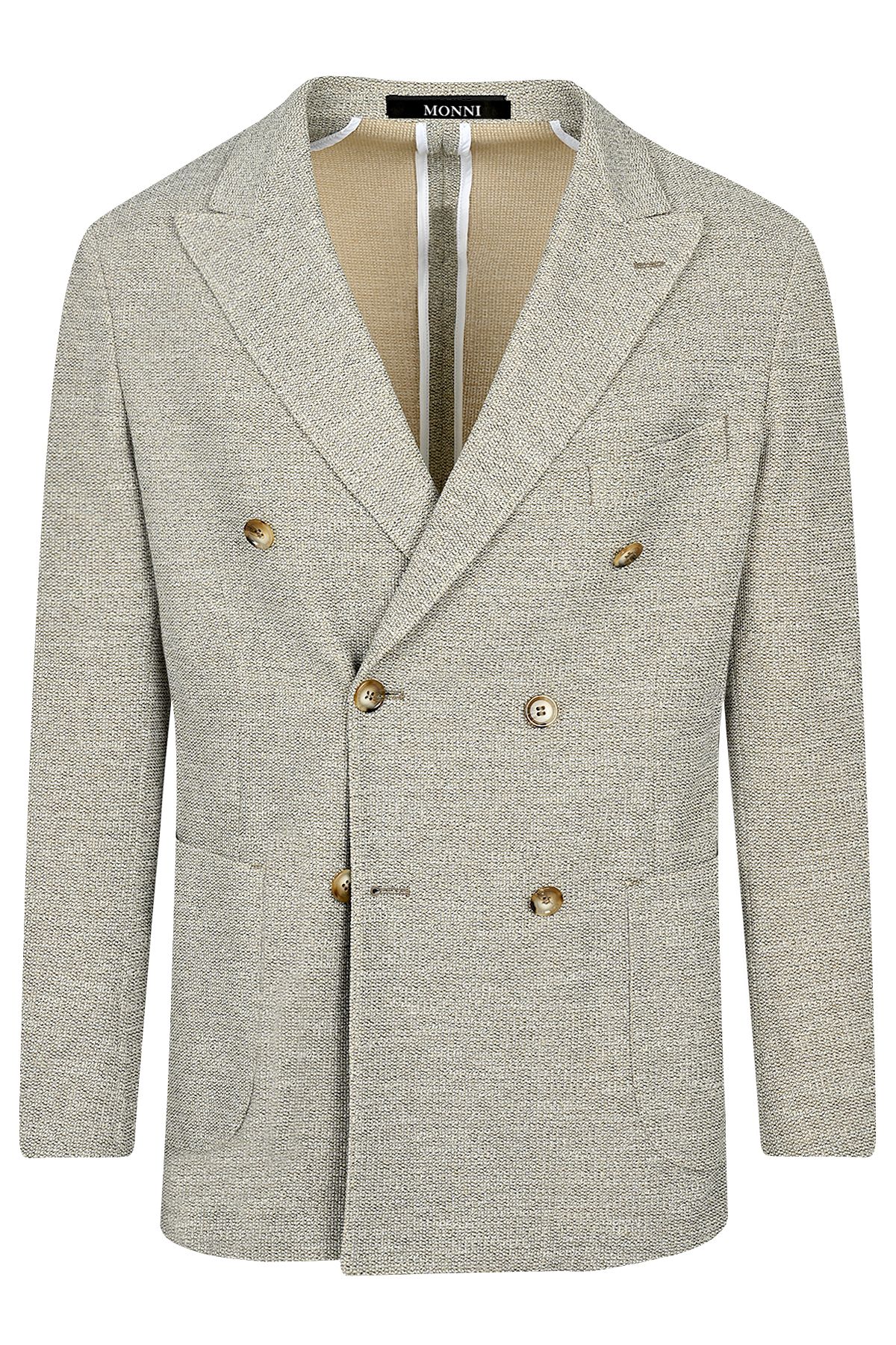 Мъжко двуредно спортно в релефен памучен бежов плат