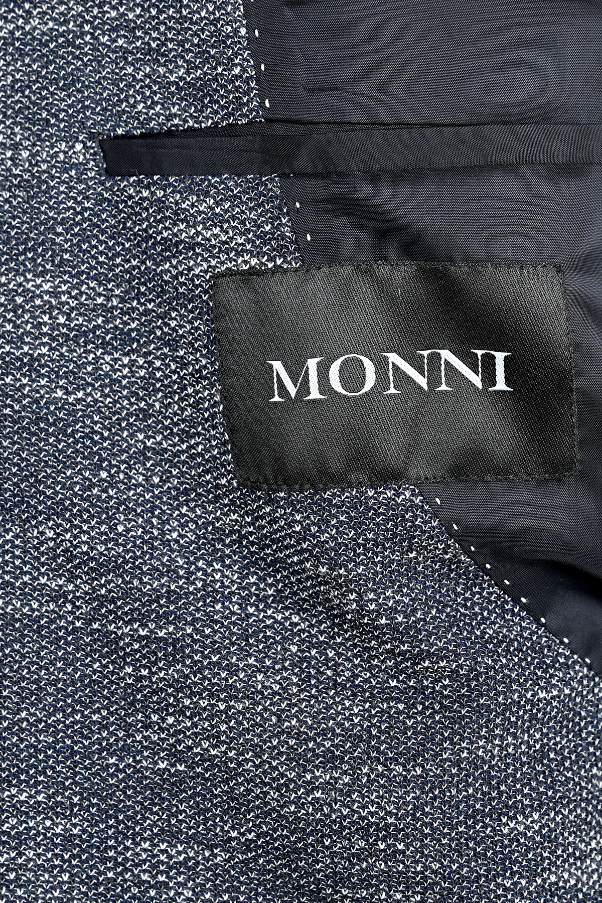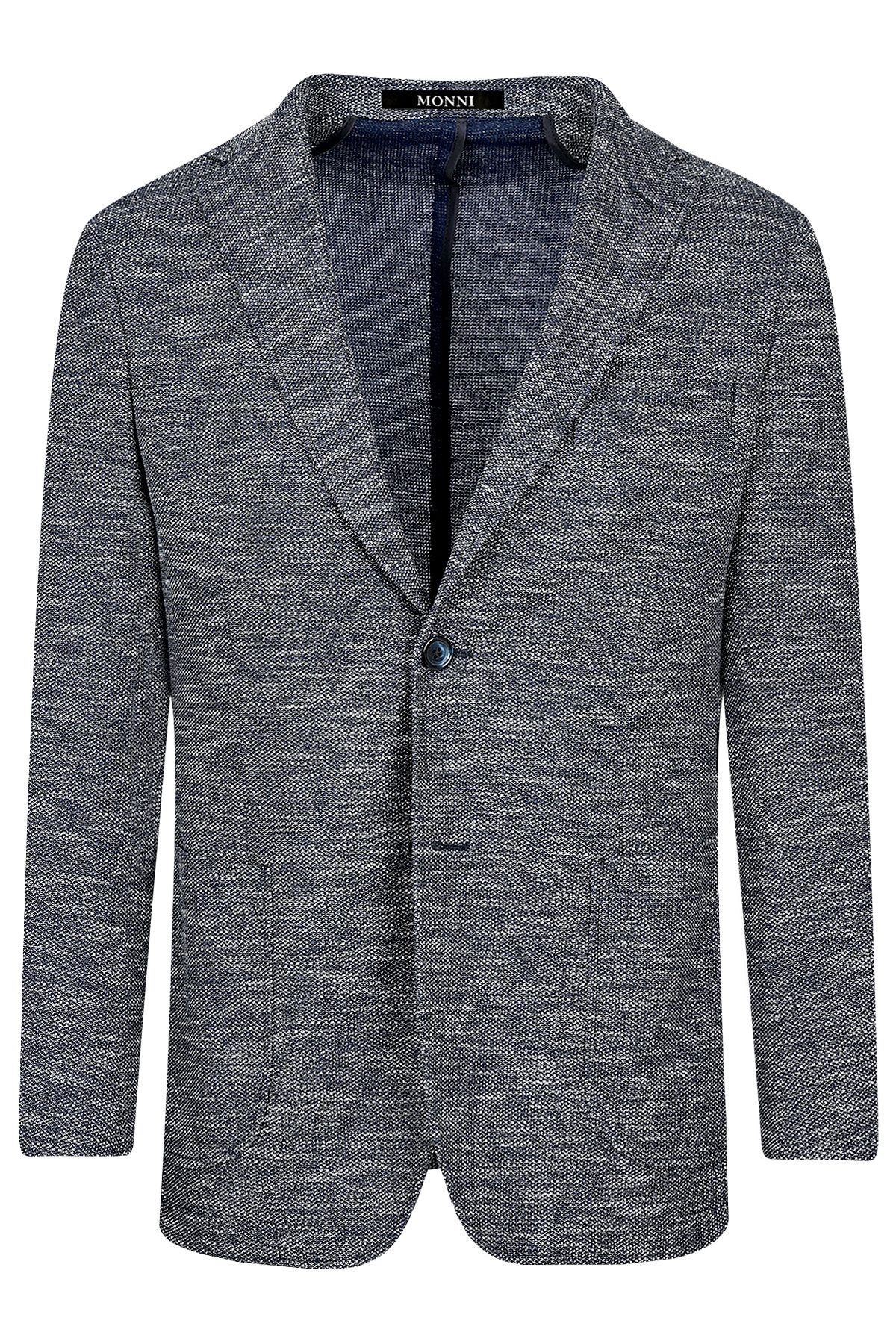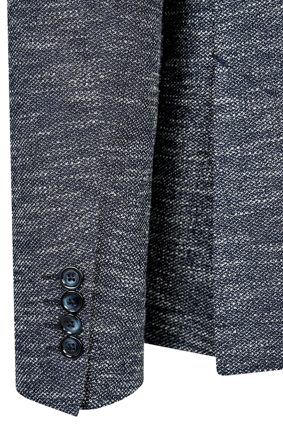Мъжко вталено трикотажно меланжирано сако в деним цвят