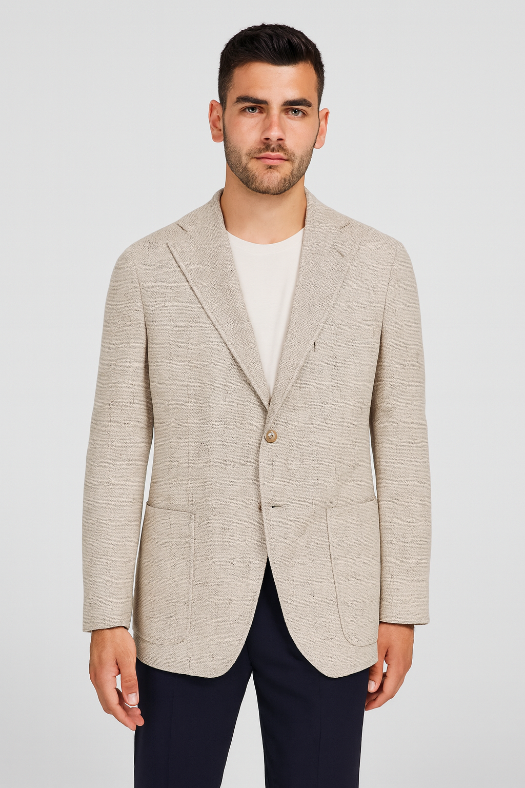 Мъжко вталено трикотажно релефно сако в бежов цвят