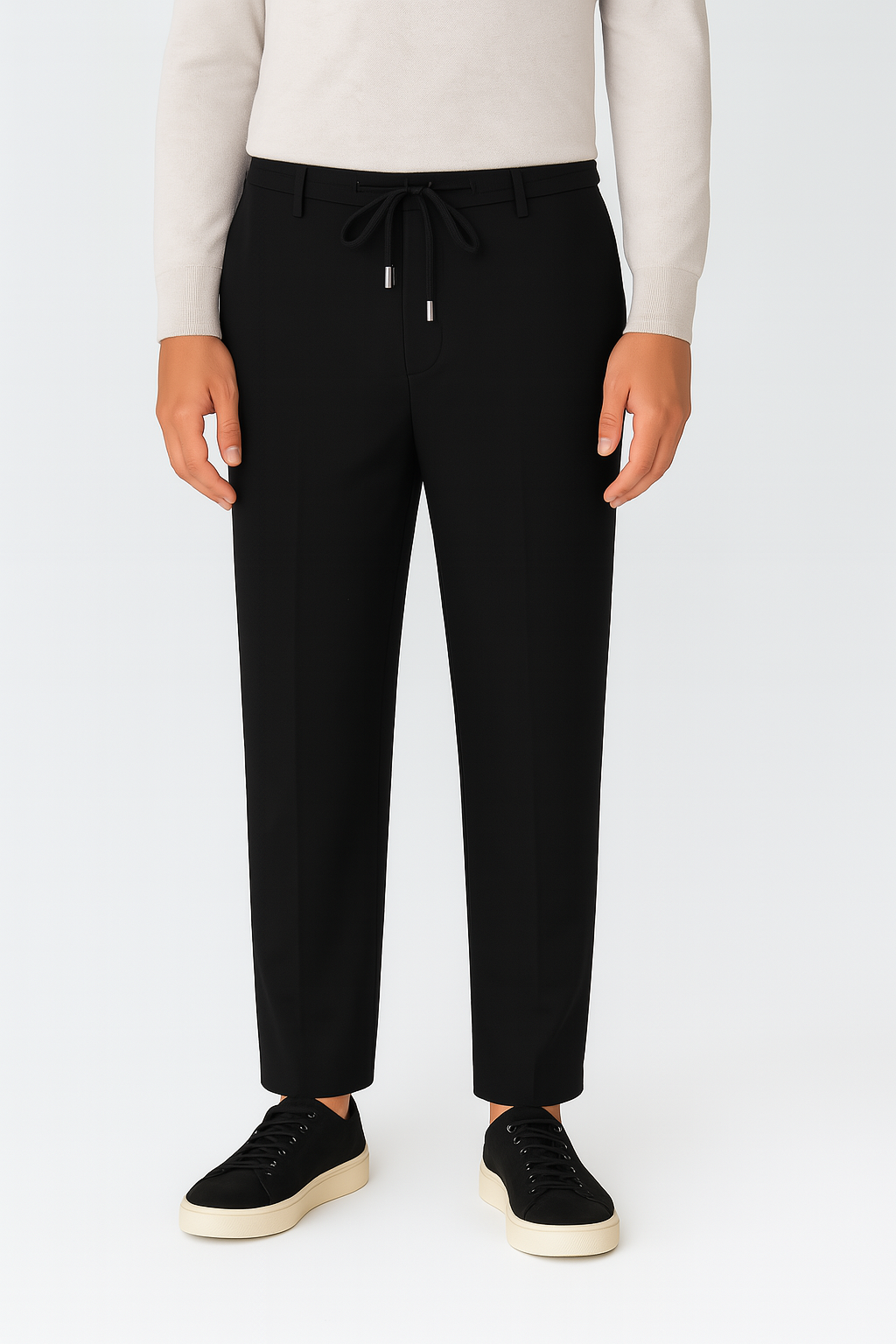 Мъжки панталон с връзки от разтеглив меланж плат в черен цвят