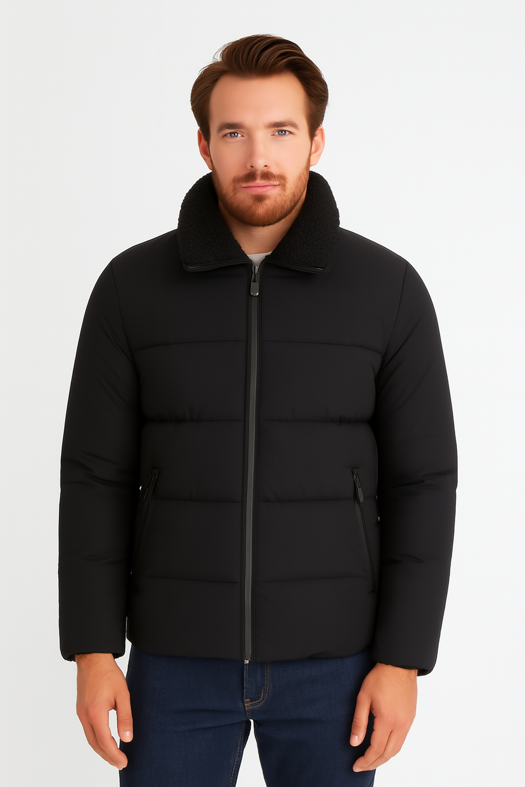 Мъжко пухено яке в черно с яке от черна еко кожа