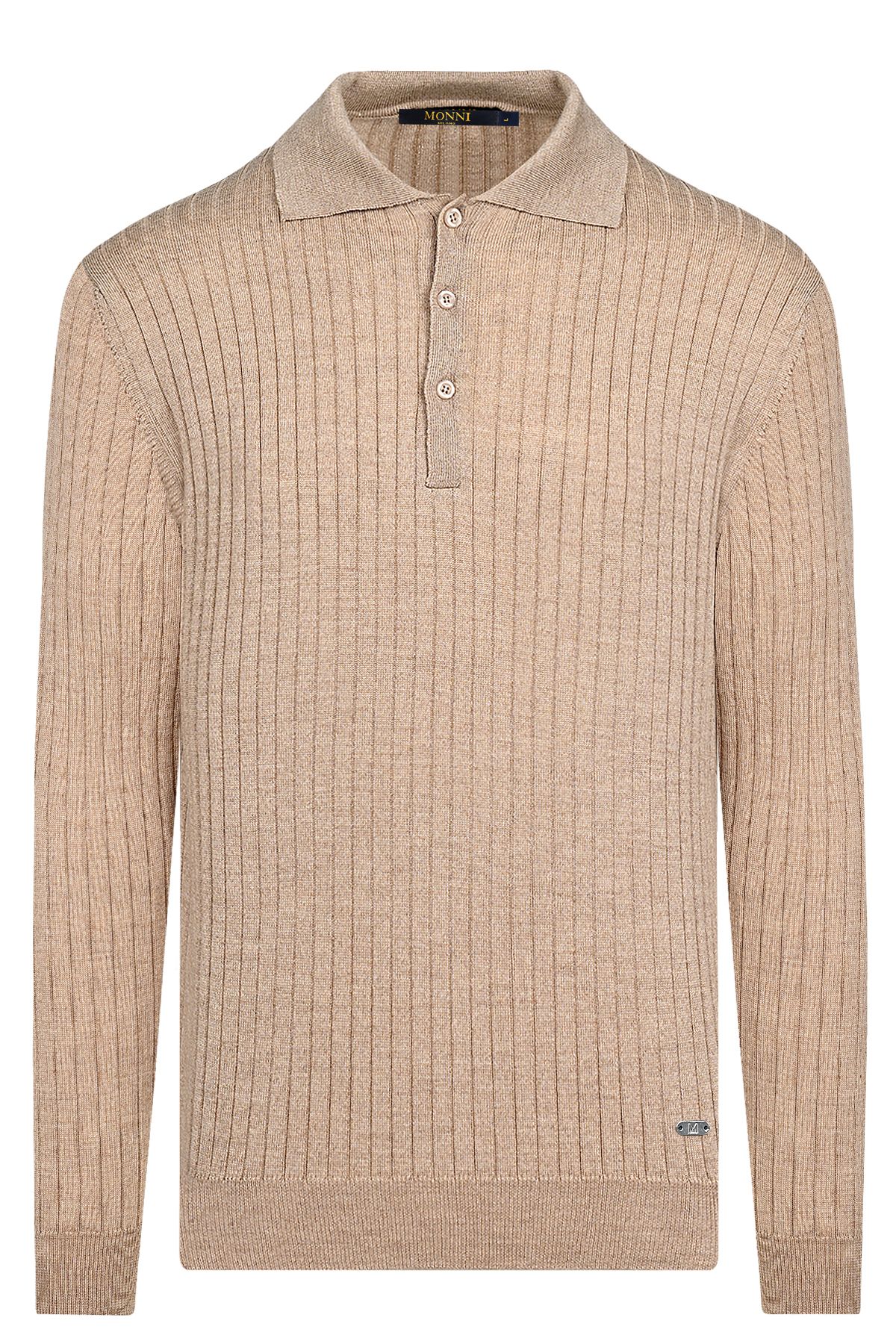 Луксозен мъжки пуловер от оребрена мерино вълна в бежово