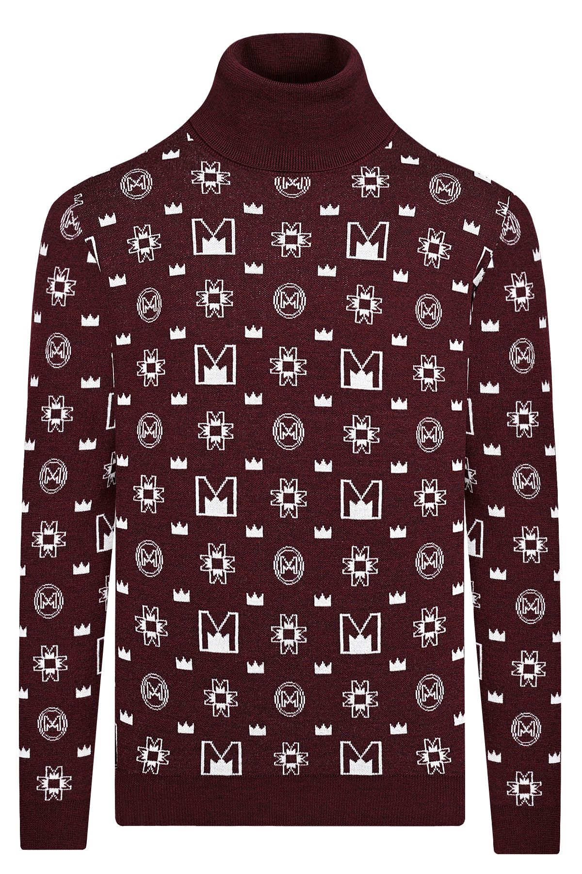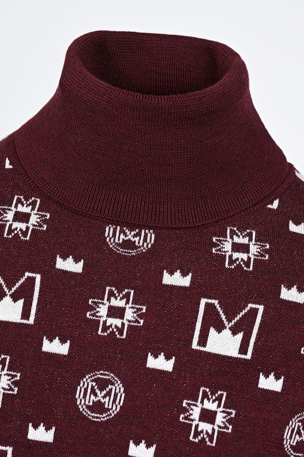 Луксозен мъжки пуловер Turtle Neck с брандиране символи в бордо