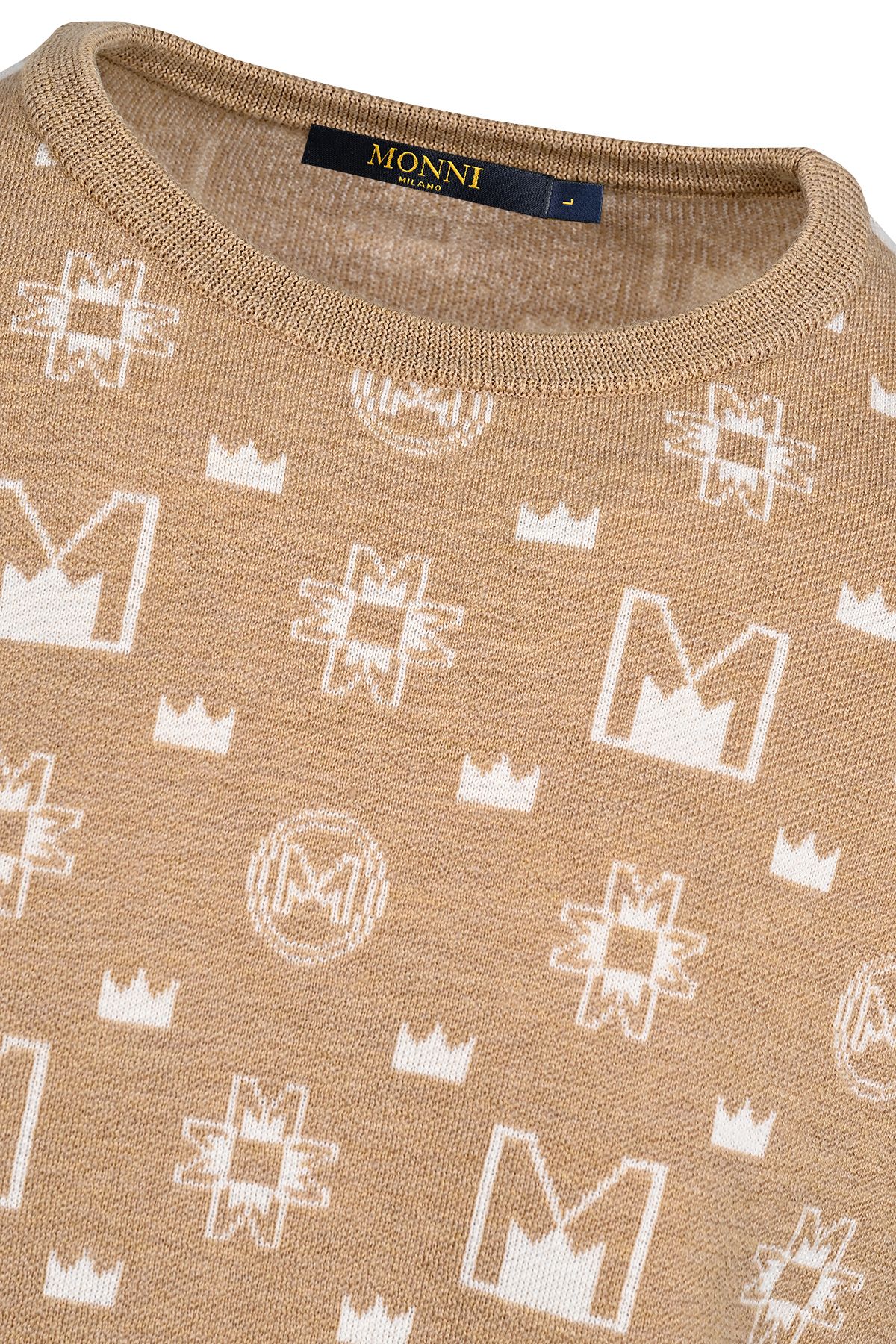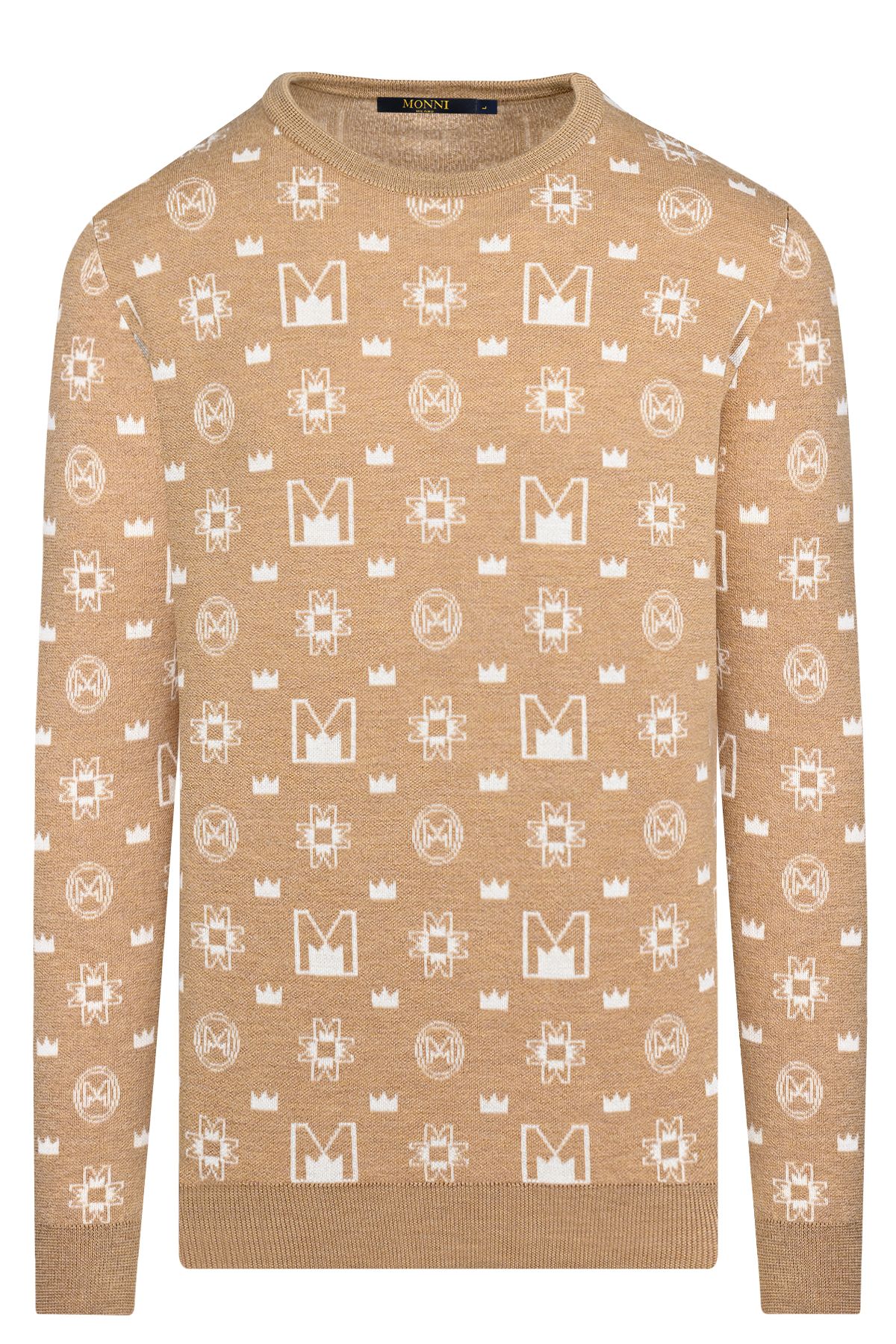 Луксозен мъжки пуловер Crew Neck с брандиране символи в бежово